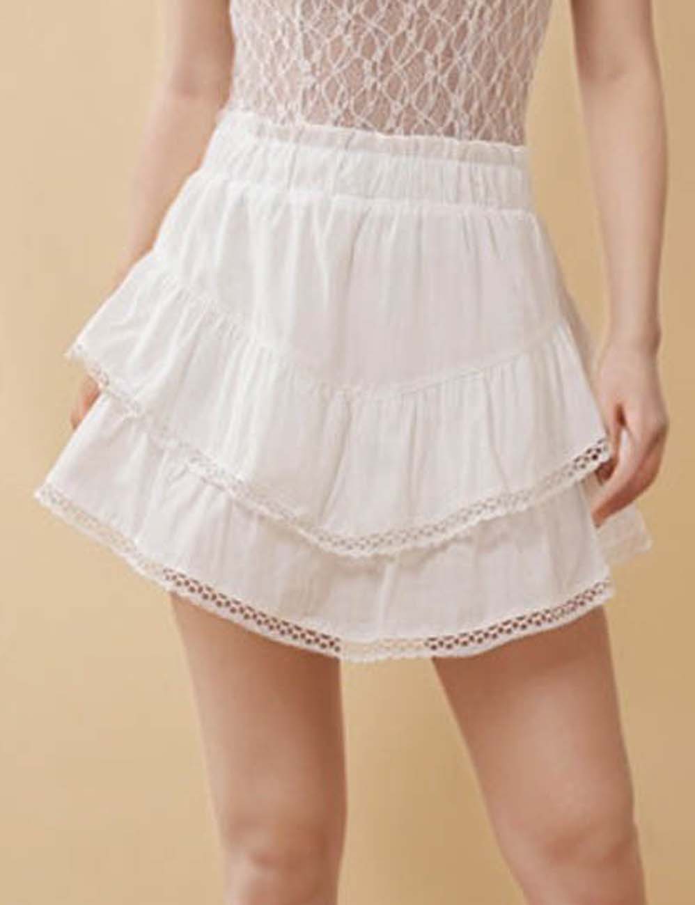 Ladies Solid Color Ruffle Eyelet Elastic Waist Mini Skort
