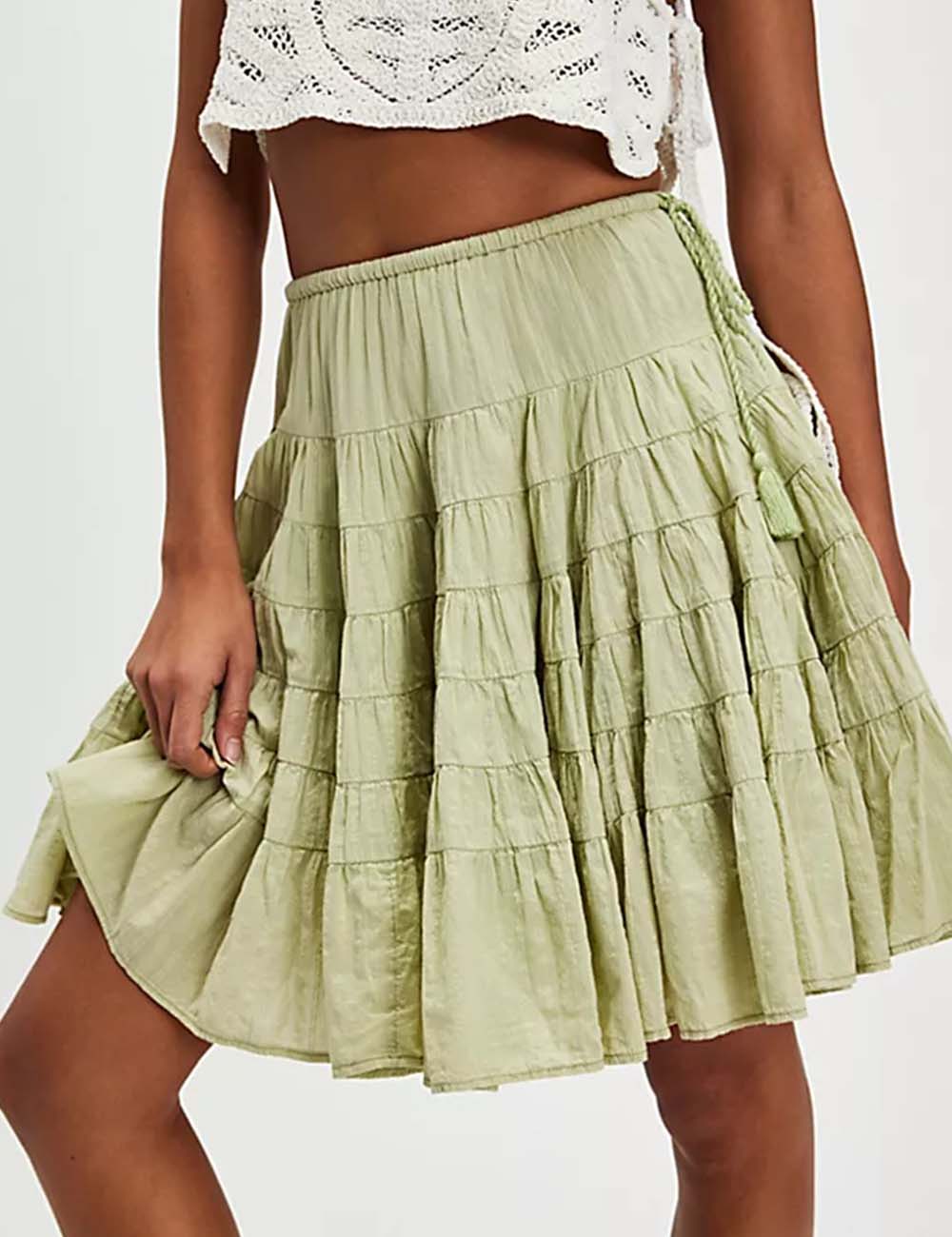 Ladies Solid Color Layered Pleats Midi Skirt Ruffle Skirt