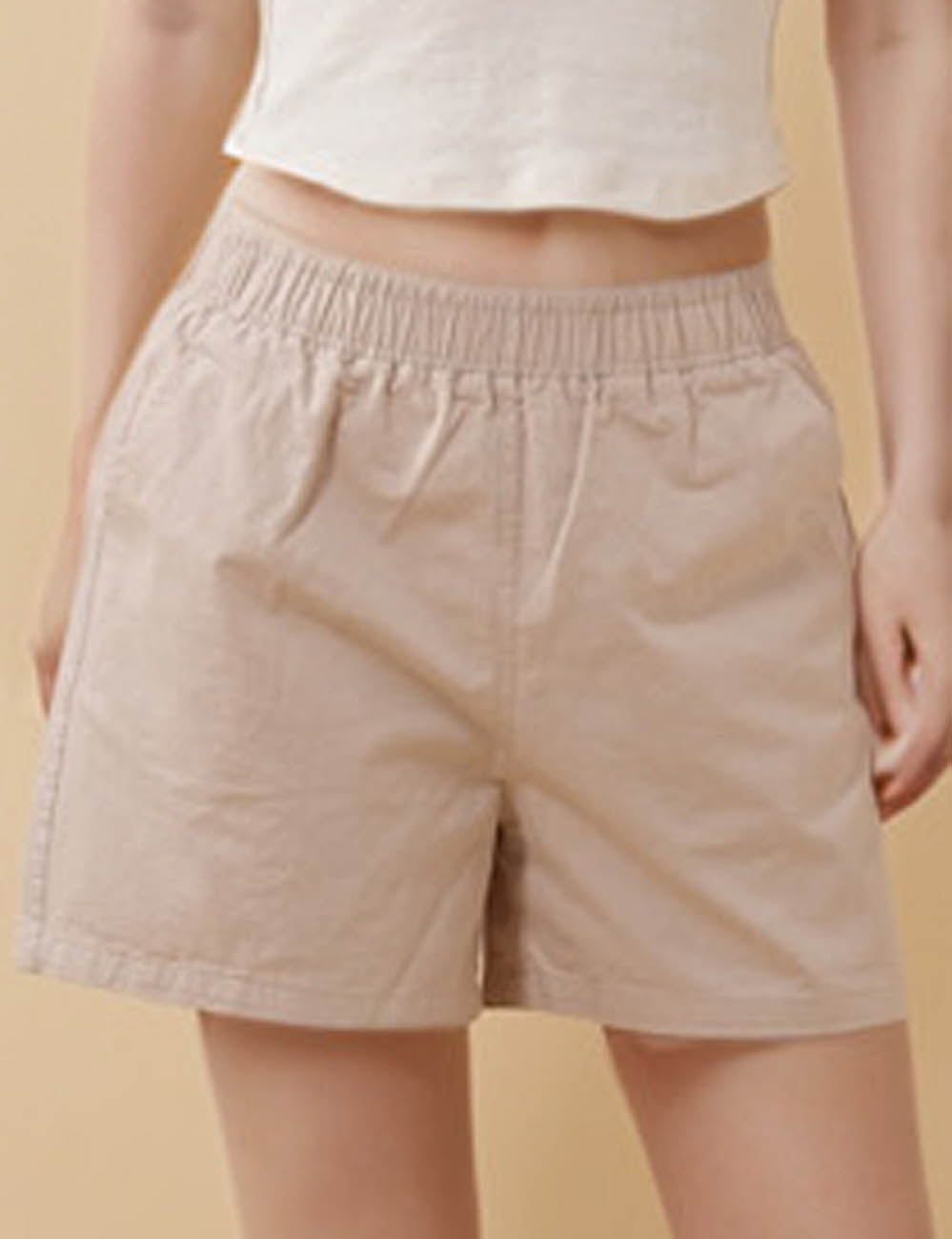 Ladies Solid Color Elastic Waist Pocket Shorts