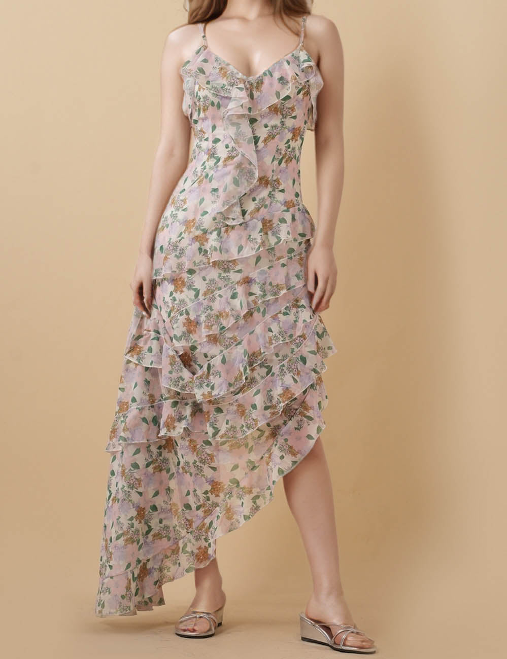 Ladies Floral Print String Shoulder Slit Maxi Dress 8SKD5M80