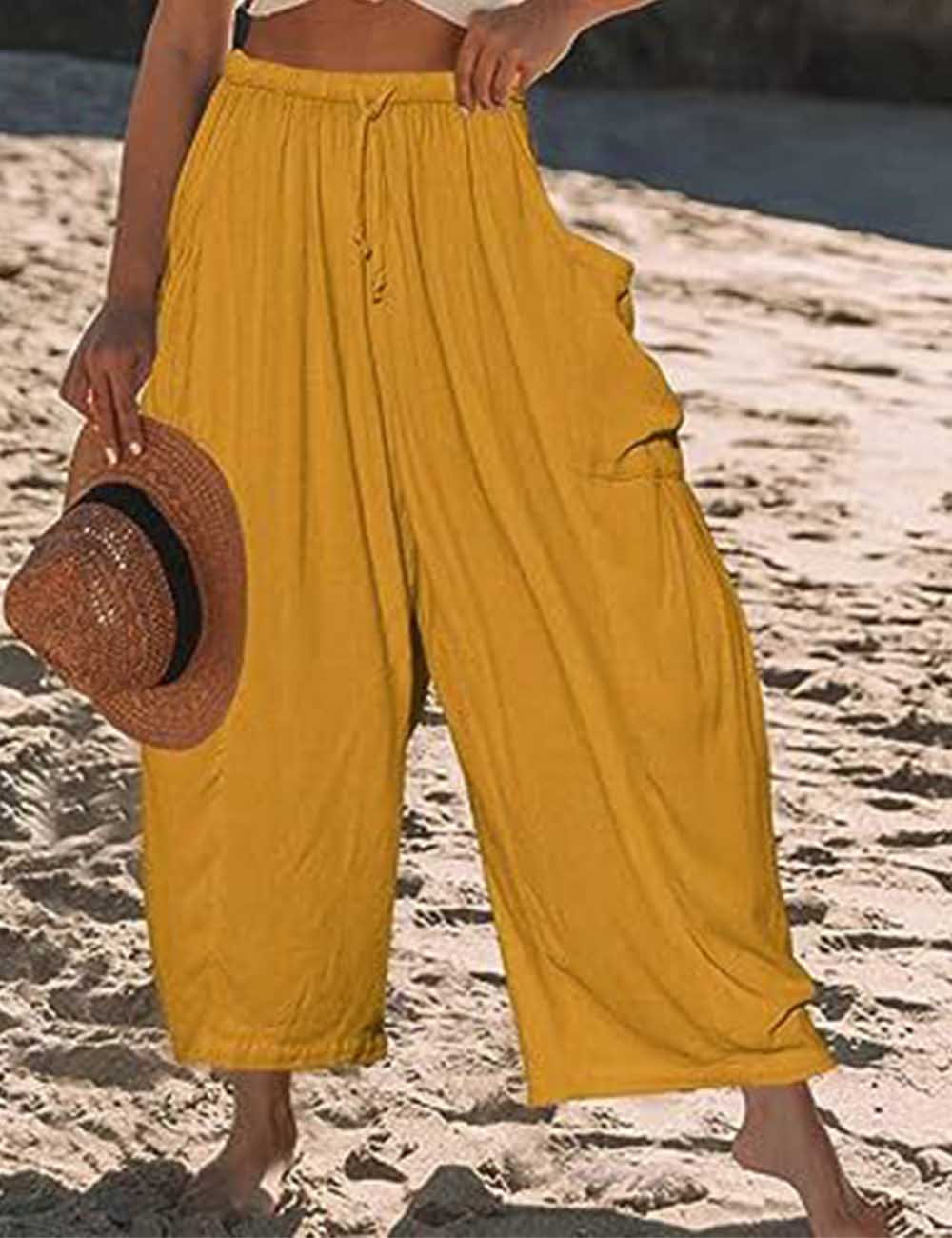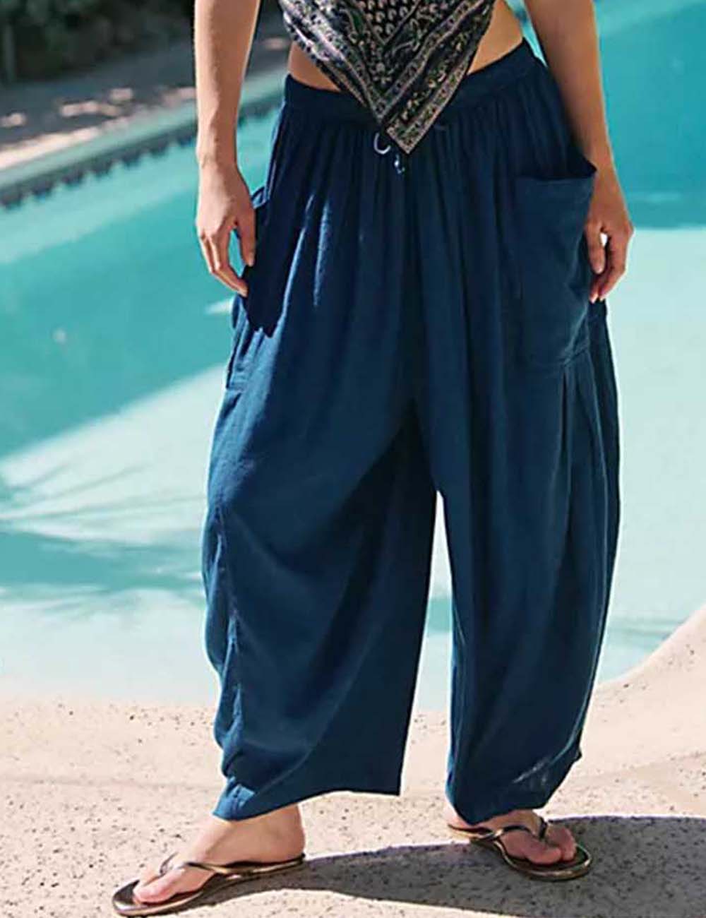 Ladies Elastic Waist String Tie Pocket Cuzy Pants