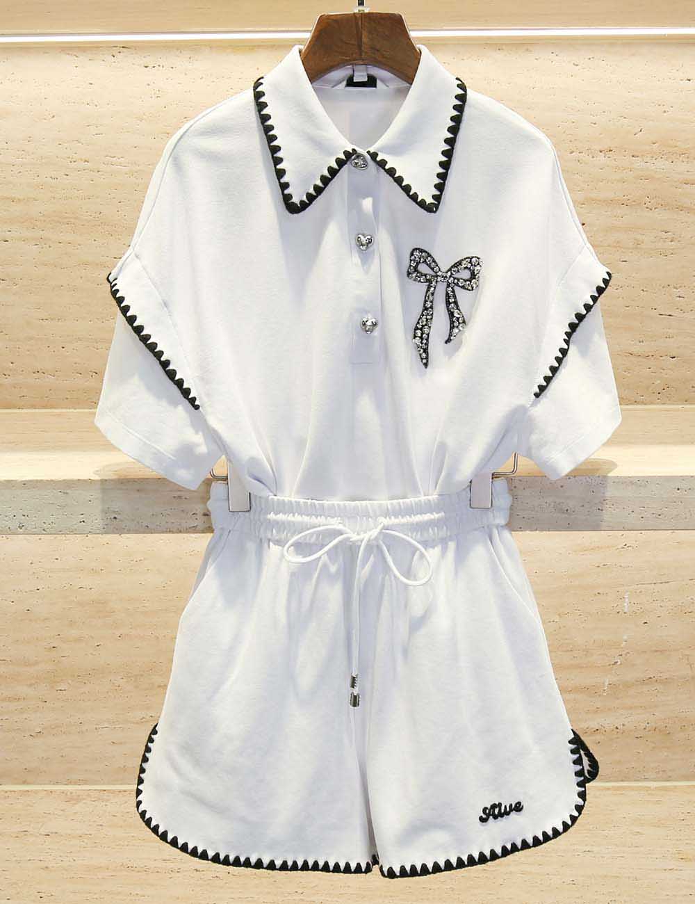 Features: * Ladies Set * Slight Stretch * Color Block * Turn-down Collar * Short...