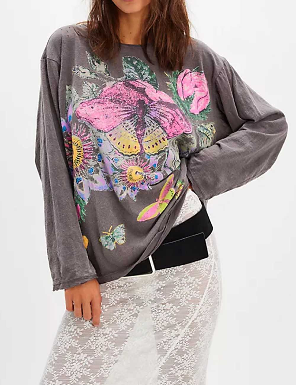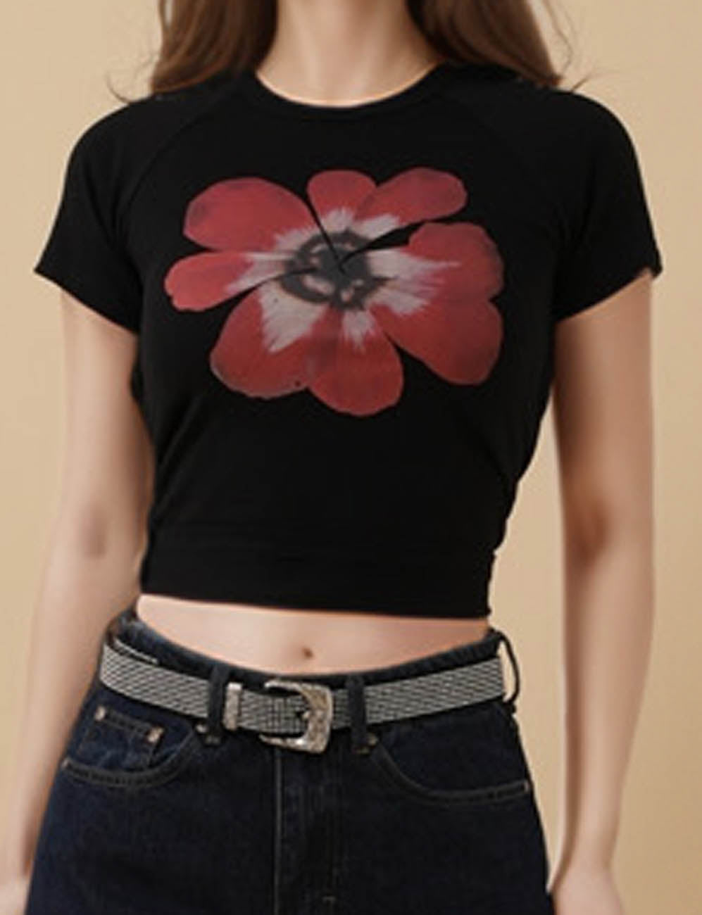 Features: * Ladies T-Shirt * 95% Cotton and 5% Spandex * Fabric with Stretch * Flower...