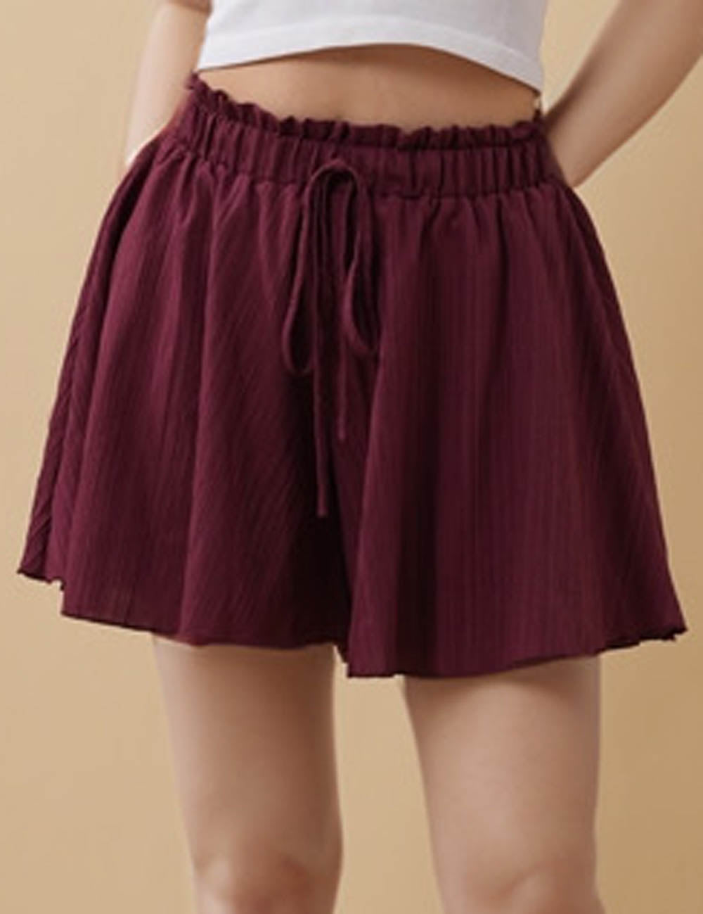 Ladies Solid Color Waffle Drawstring Shorts SKS5CF84