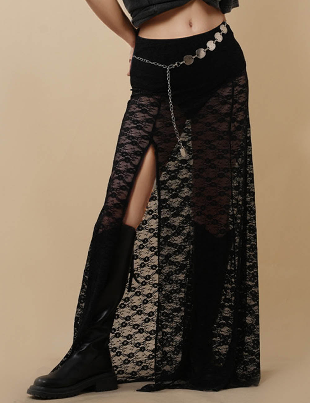 Ladies Solid Color See Through Lace Maxi Skirt 8SKS51215
