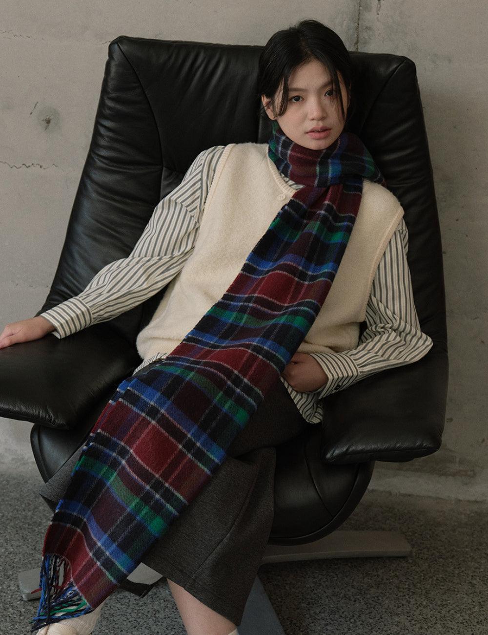 Ladies Vintage Color Block Plaid Everyday Scarf SKAS4202