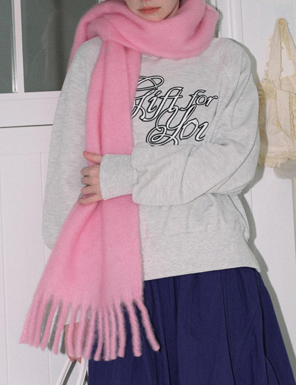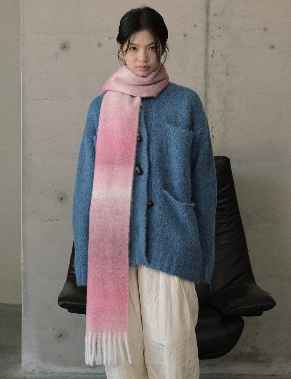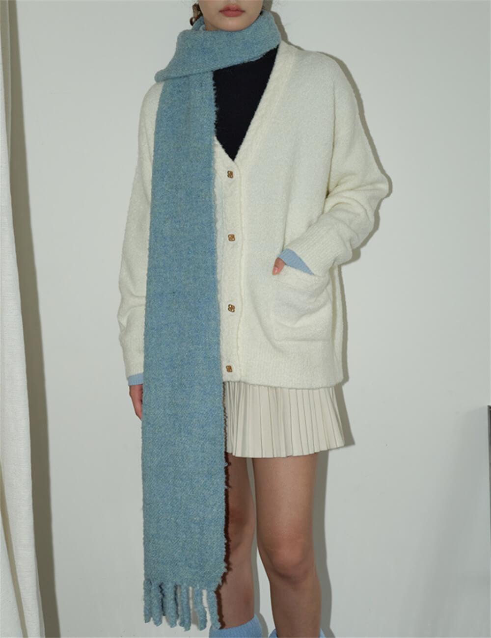 Ladies Color Block Boucle yarn thick Fringe Knit Scarf