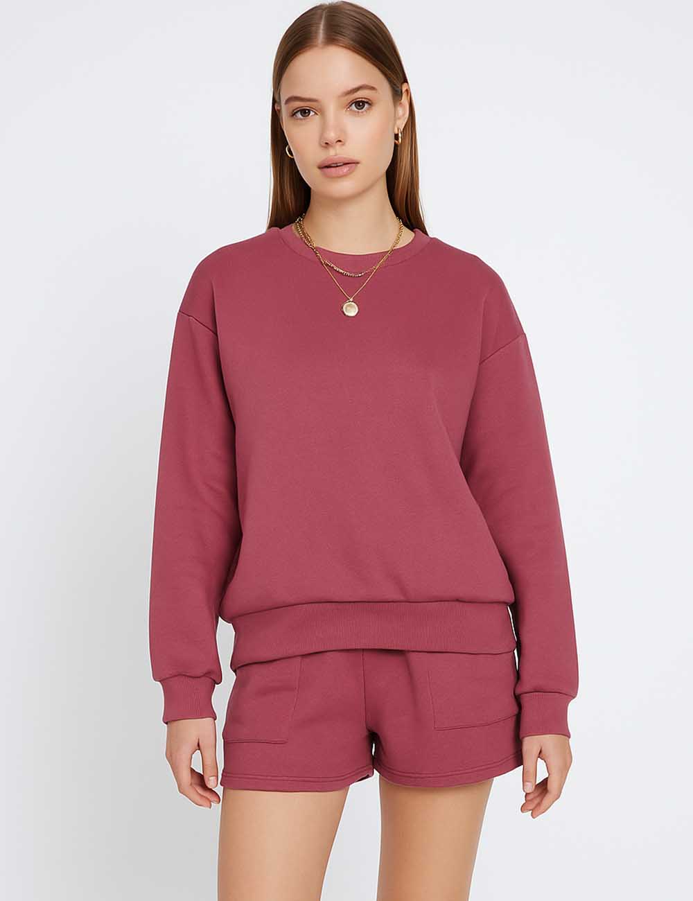 Ladies Round Neck Long Sleeves Sweatshirt & Shorts 2PCS Set