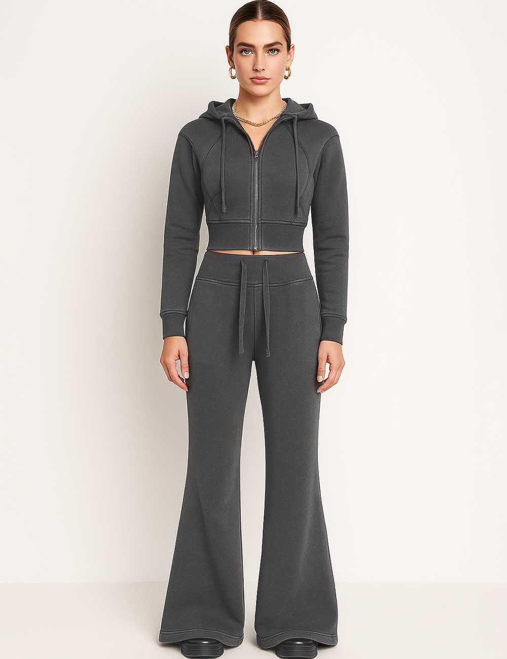 Ladies Hooded Zipper Closure Flared Leg Sweatshirt & Pants Set