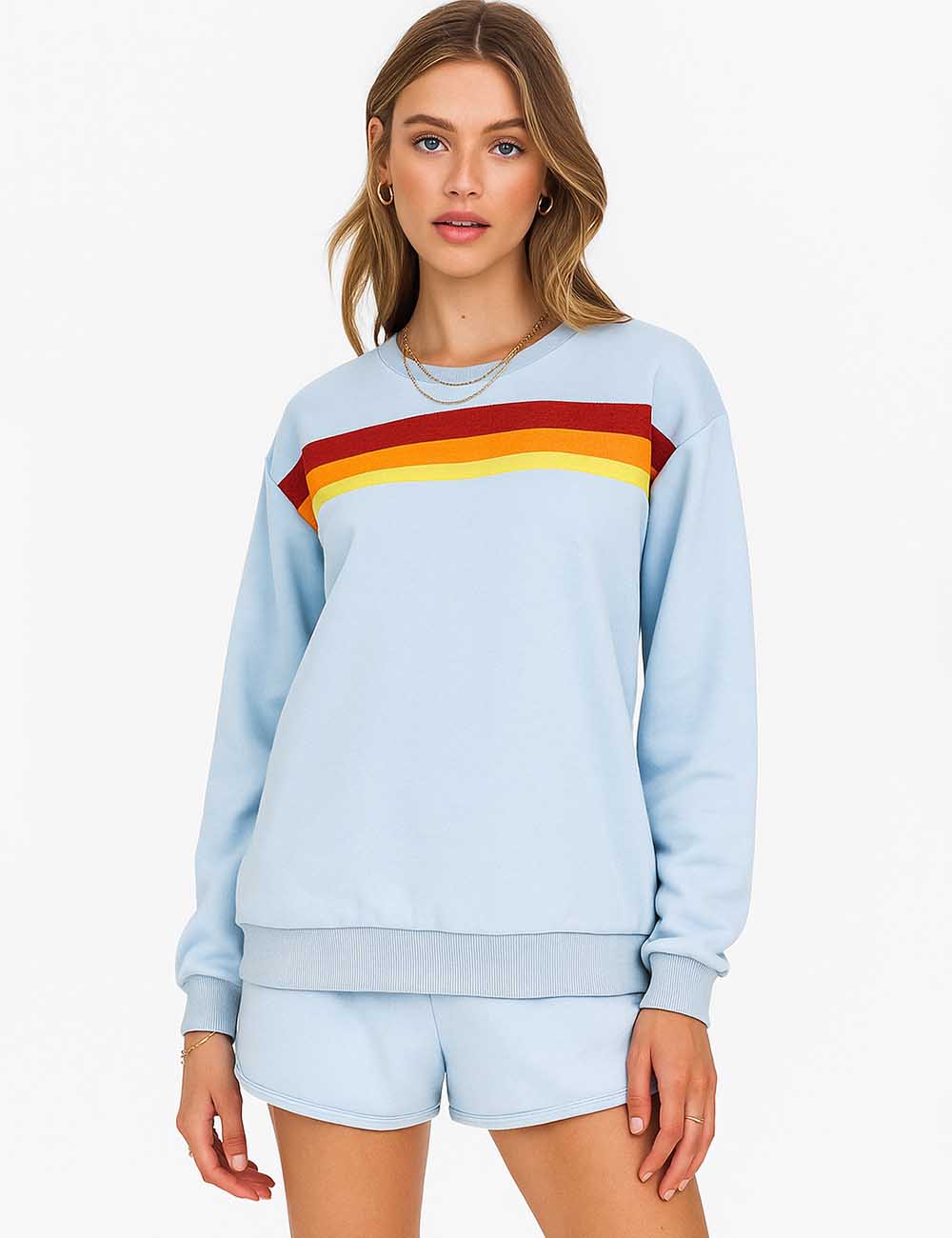 Ladies Colorful Striped Round Neck Sweatshirt & Shorts Set