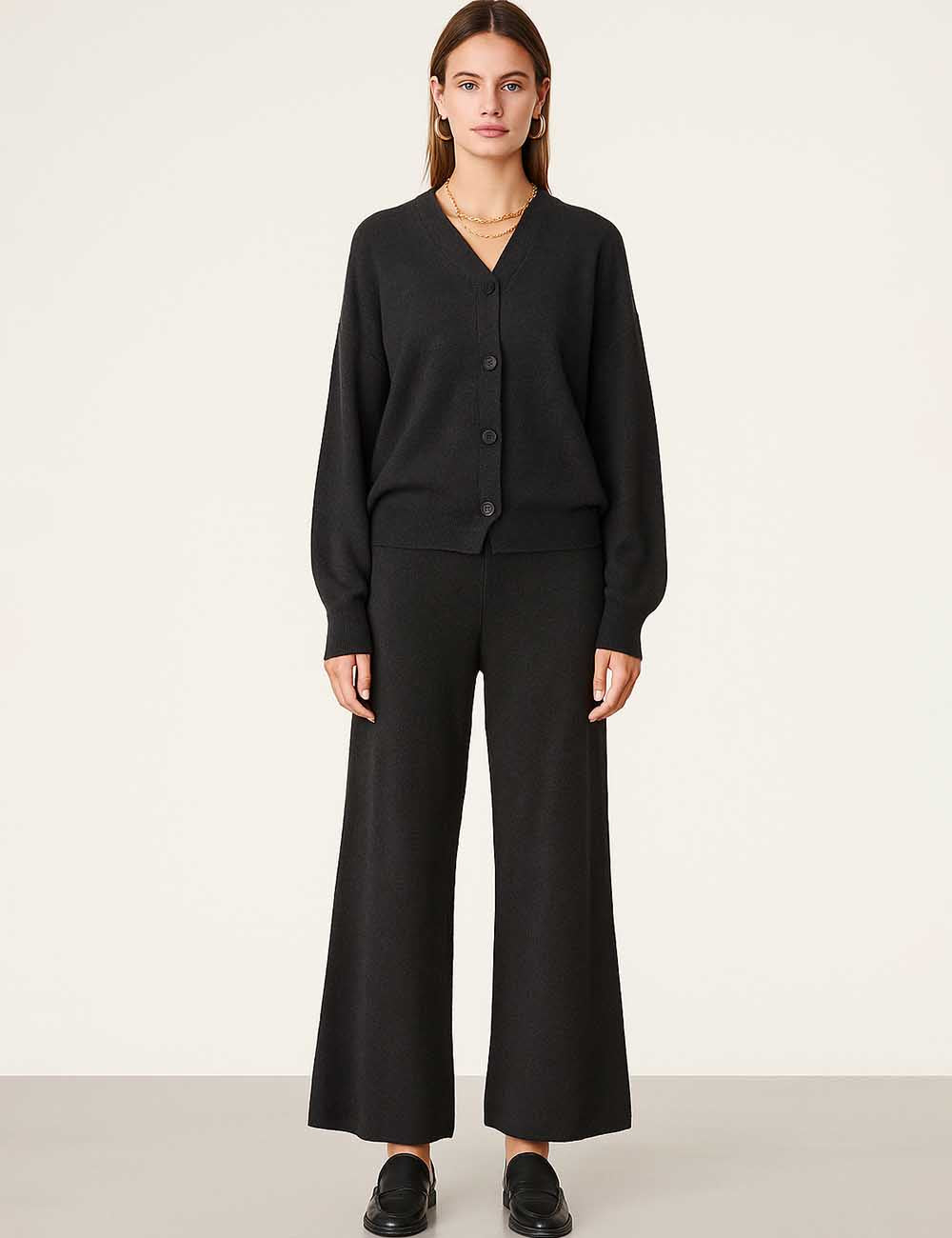 Features: * Ladies Knit Set * 100% Polyester * Fabric with Stretch * Solid Color * V-Neck...