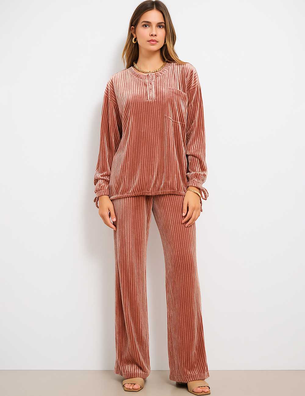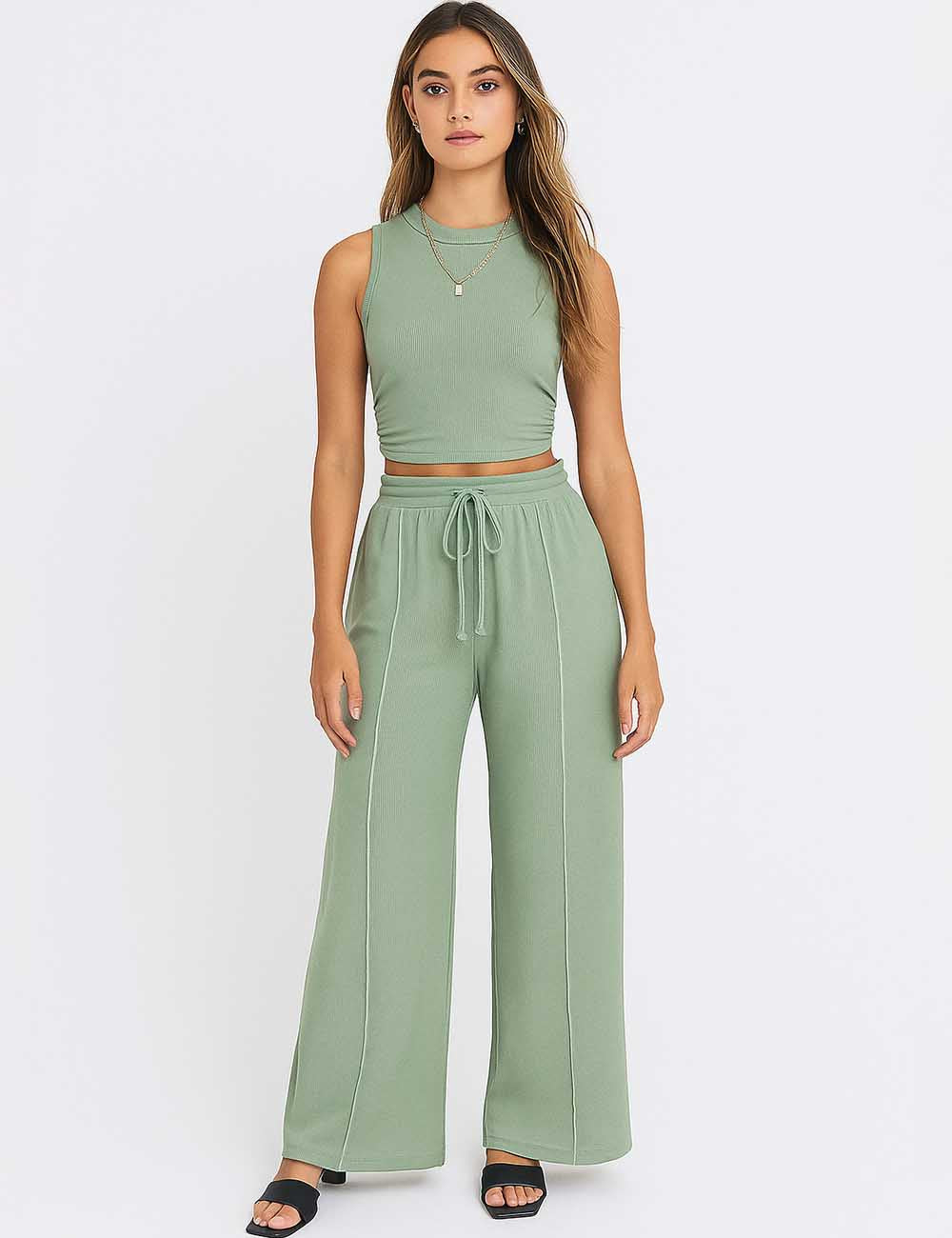 Ladies Ribbed Knit Stretch Ruched Tank Top & Pants Set