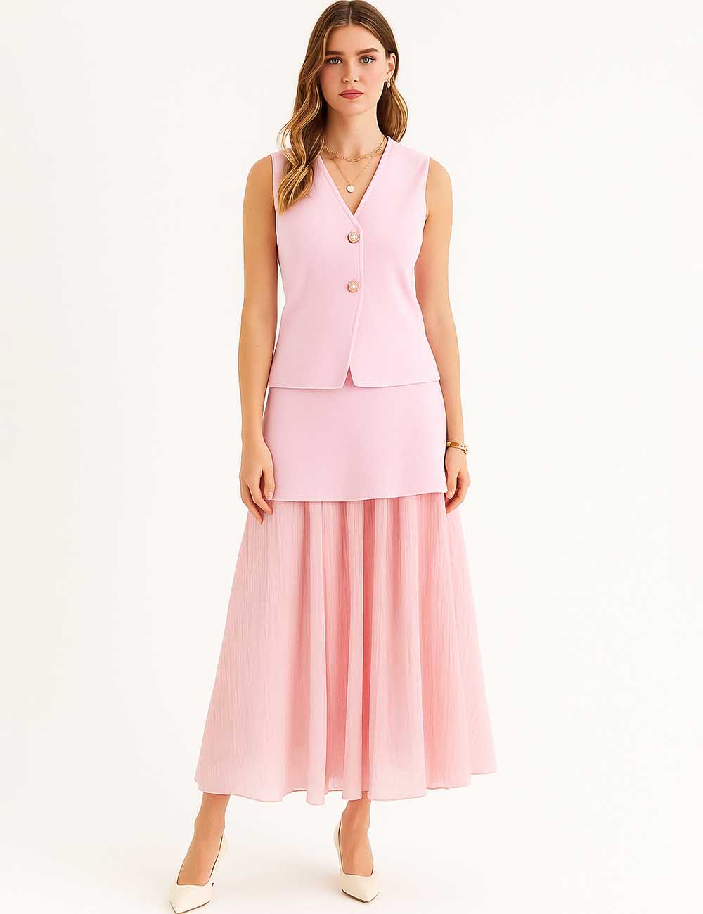 Ladies Knit Round Neck Sleeveless Top & Maxi Skirt Set