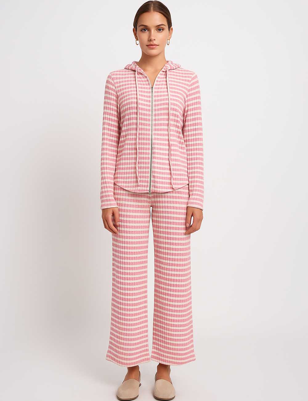 Ladies Striped Color Block Hoodie Tie Sweatshirt & Pants Set