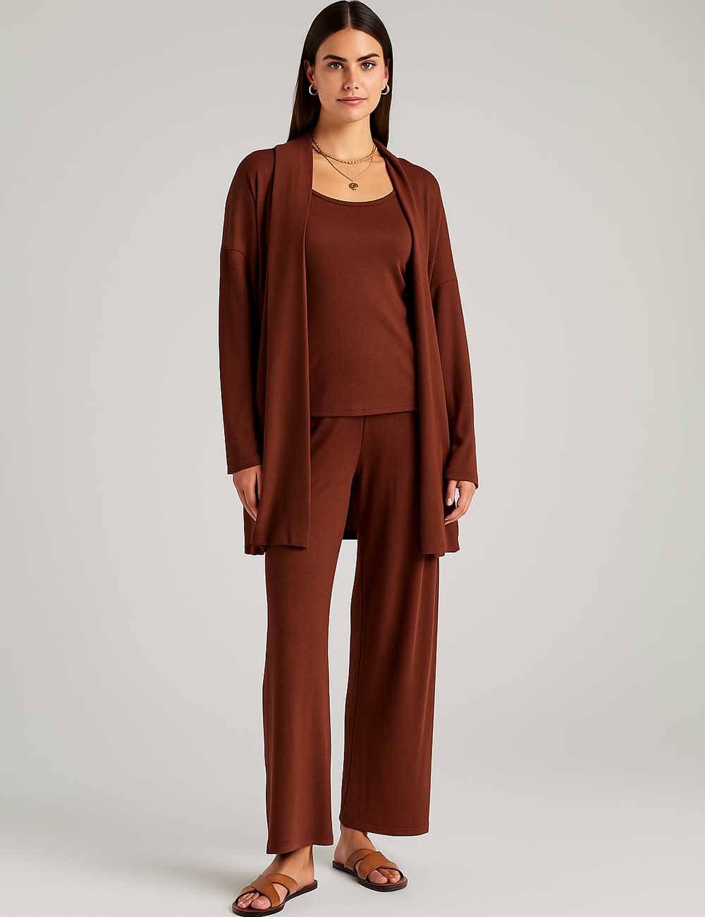 Features: * Ladies Knit Sleeves Top & Cardigan & Pants 3PCS Set * 53% Polyester,...