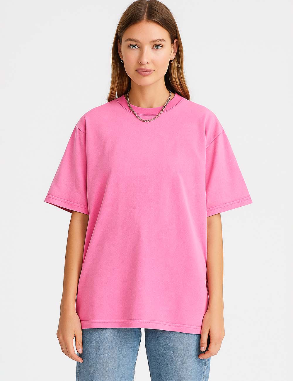 Ladies Round Neck Washed Distressed Dropped Shoulder T-shirt