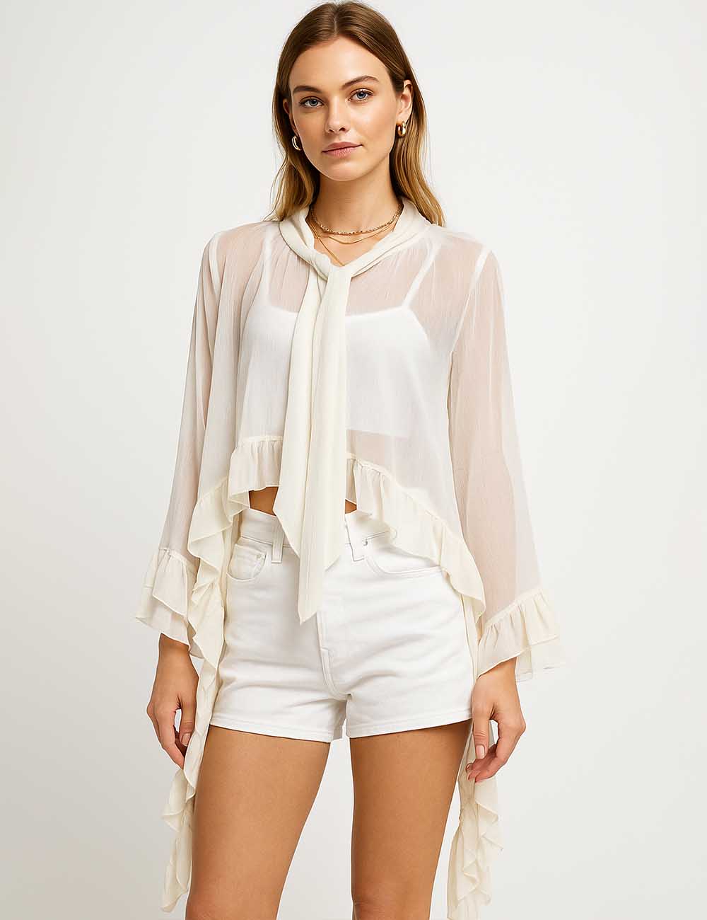 Ladies See Through Round Neck Long Sleeves Knit Top
