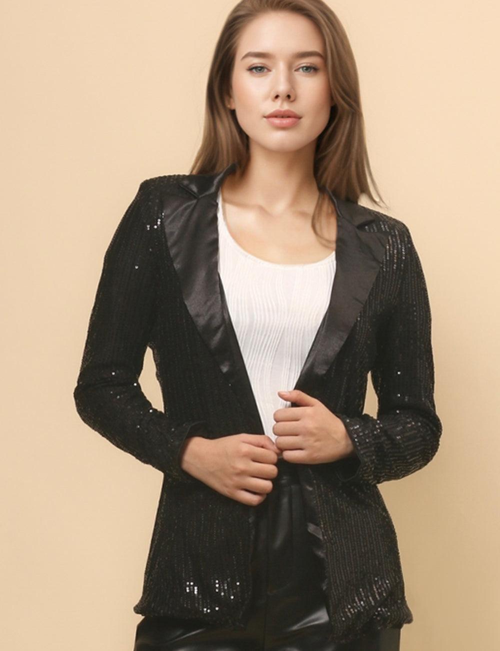 Ladies Shinny Sequin & Satin Night Out Party Jacket SKT4917