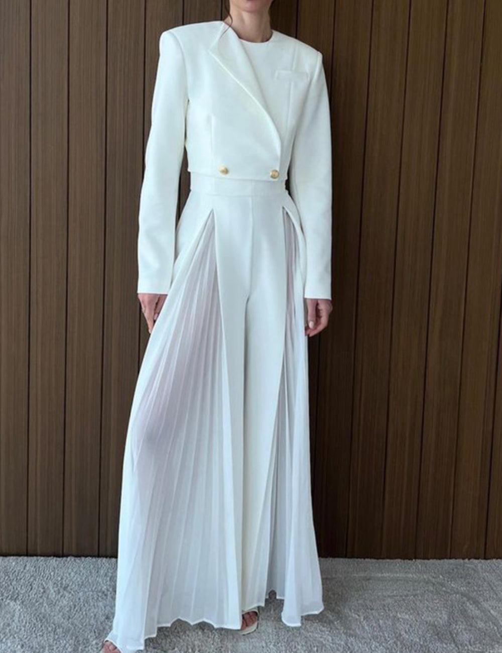 Ladies Elegant Golden Botton Crop Blazer/ Pants SXT505209/SKP505209