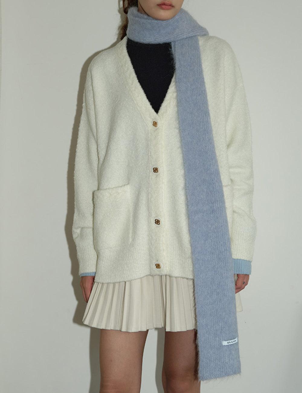 Ladies Color Block Boucle yarn thick Fringe Knit Scarf