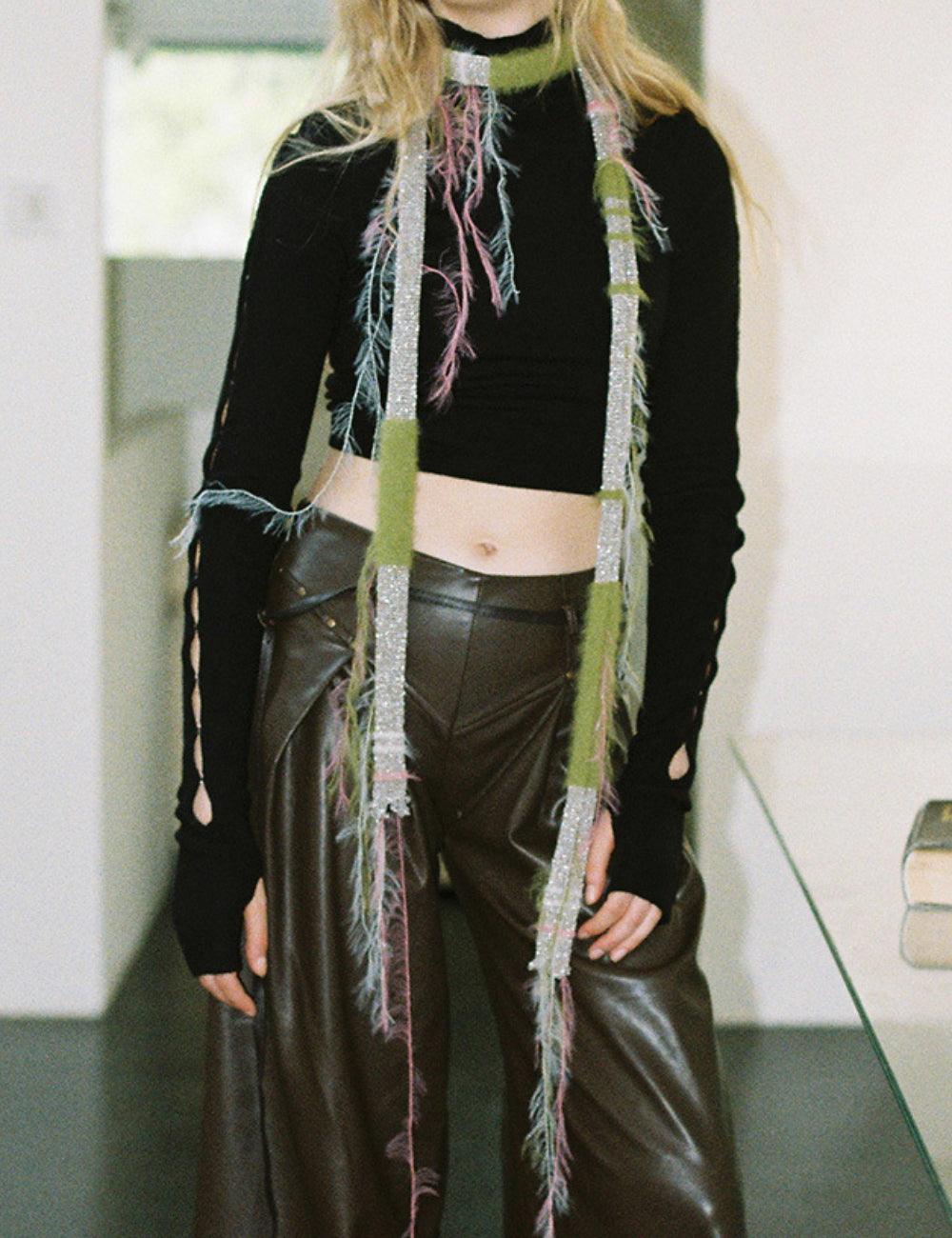 SWEETKAMA Ladies Skinny Vintage Tassel Y2K Scarves YW051