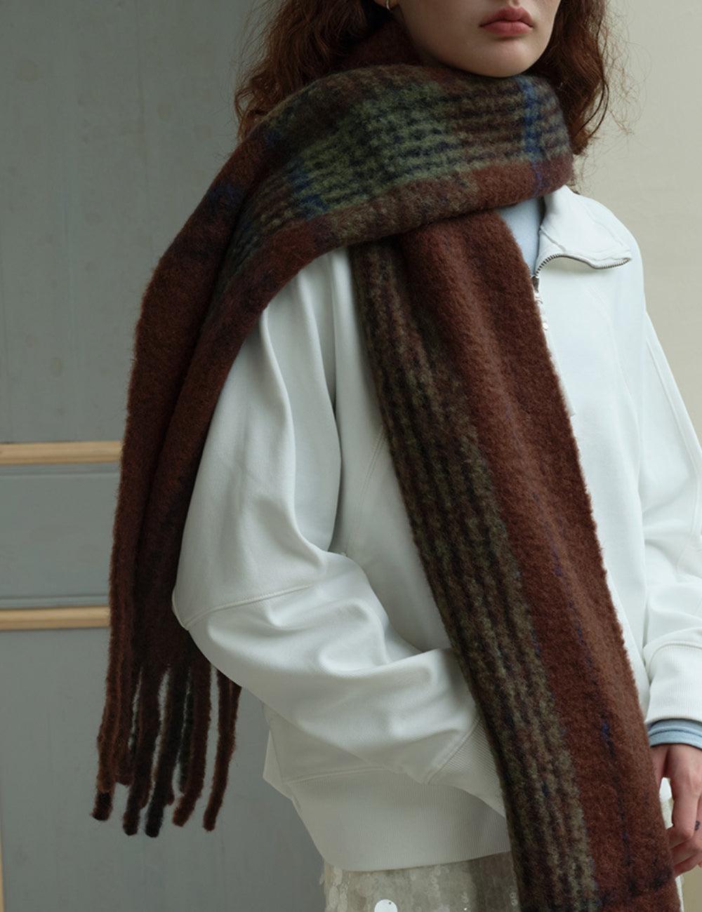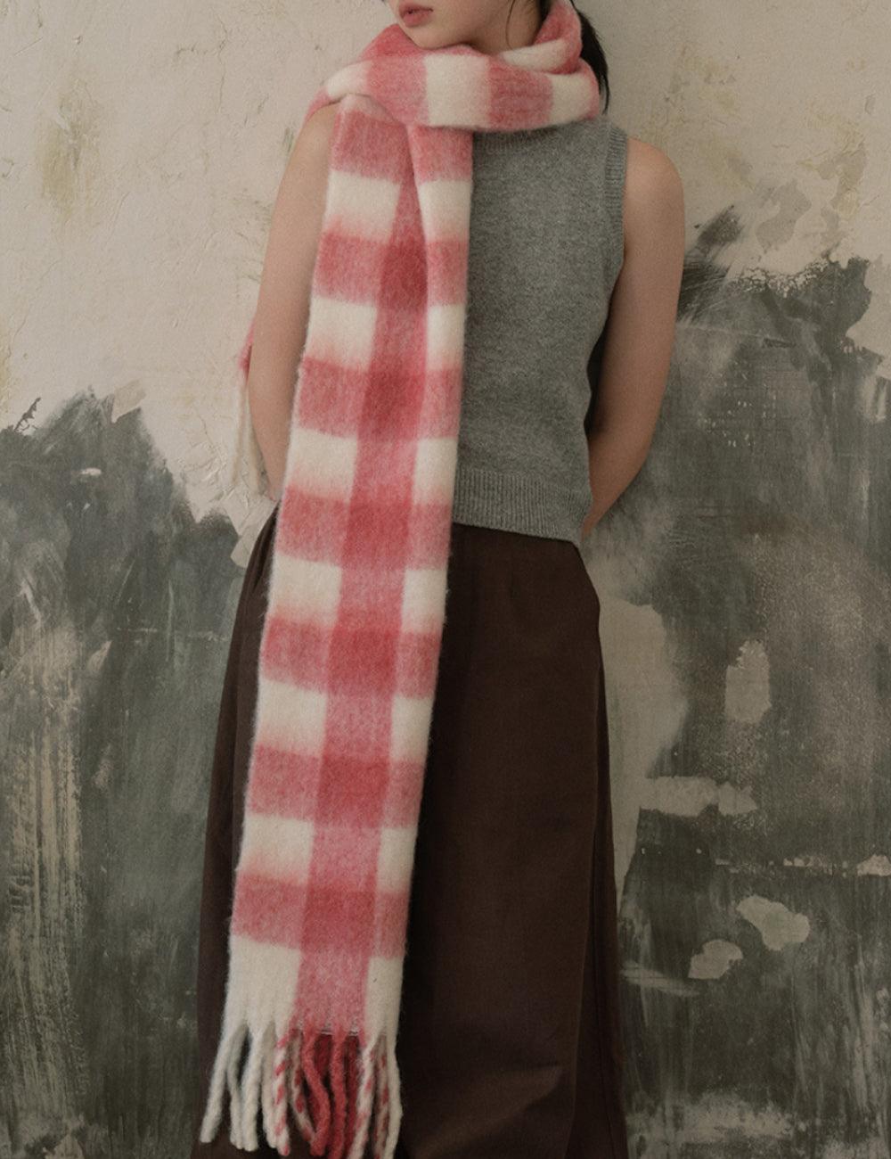Ladies Vintage Plaid Pattern Mohair Scarf SKAS4204
