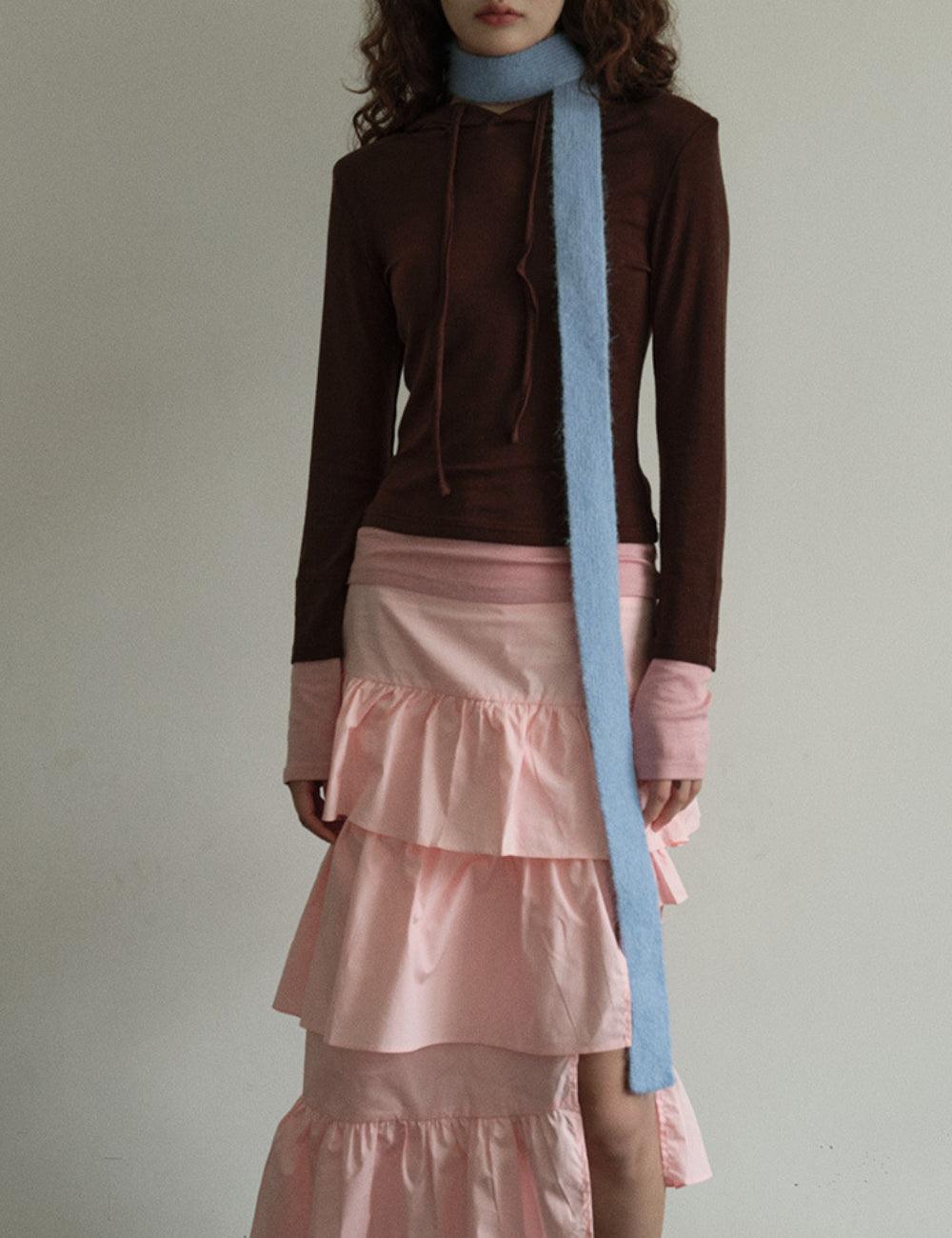 Ladies Simple Fashionable Drawstring Hooded Knit Scarf