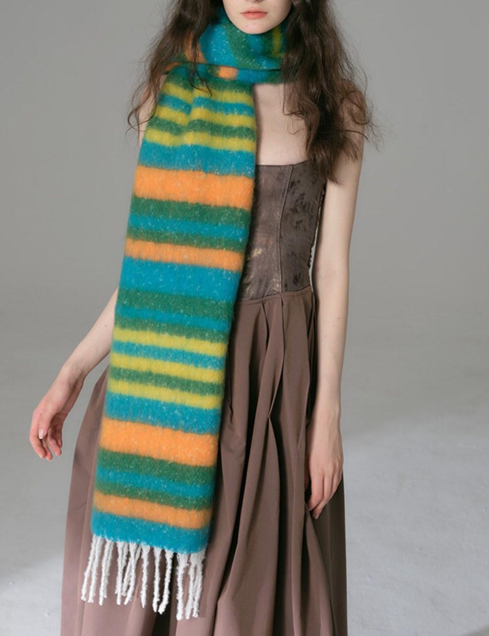 Ladies Colorful Stripe Tassel Soft Scarf YN002