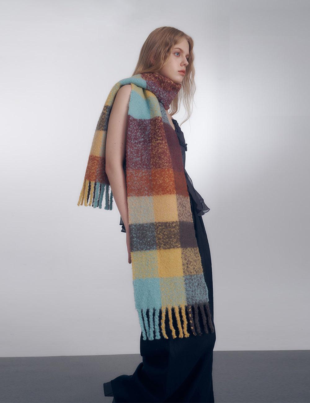 Ladies Warm Colorful Plaid Fringe Knit Scarf