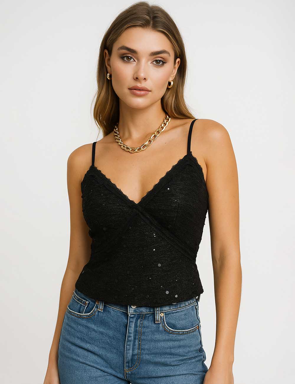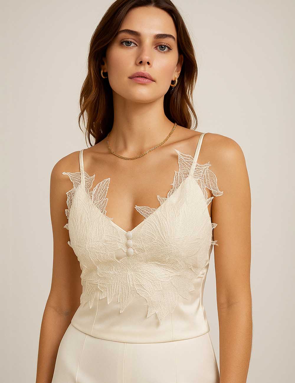 Ladies Chic Leaf Embroidery V-Neck String Shoulder Corset Top