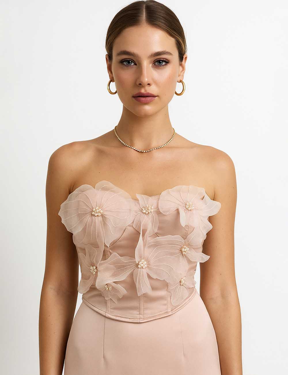 Ladies Strapless Sleeveless Corset 3D Flower Beading Tube Top