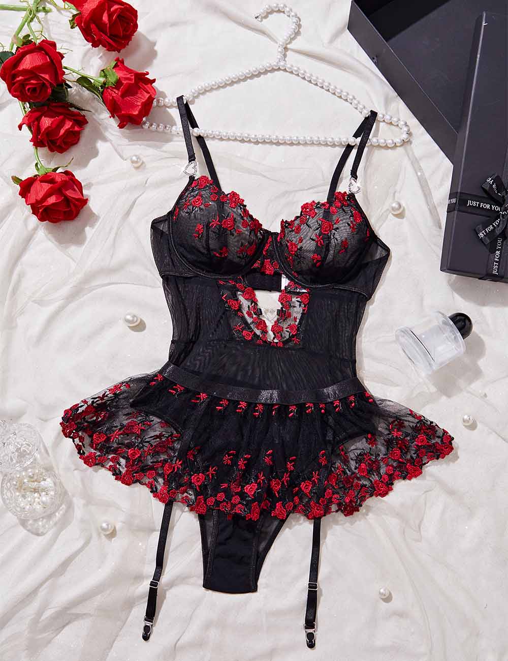 Features: * Ladies Lingerie Teddy * Polyester * Solid Color * Floral Embroidery * Sheer...