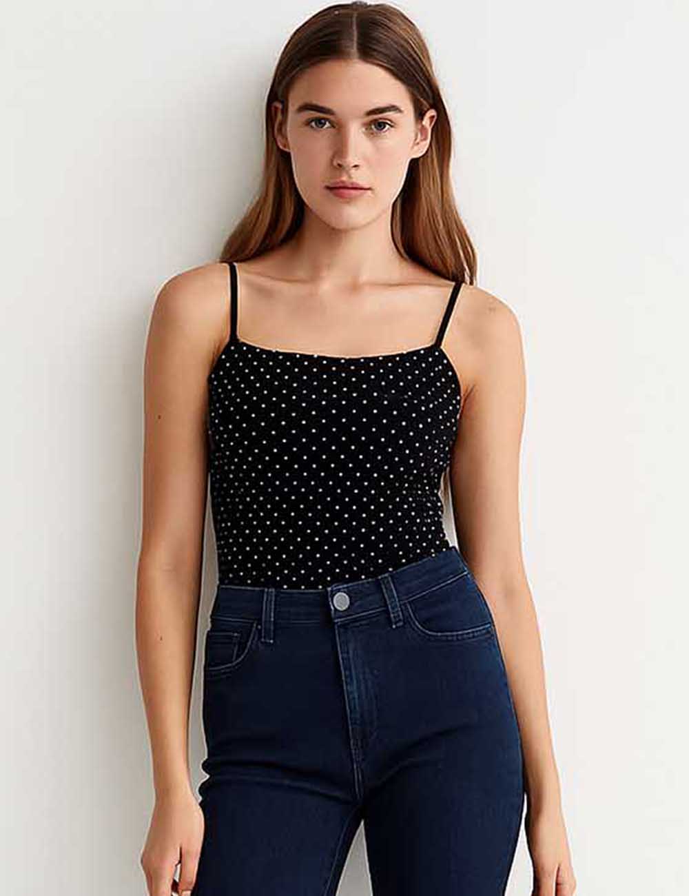 Ladies Polka Dot Color Block Spaghetti Strap Sleeveless Bodysuit