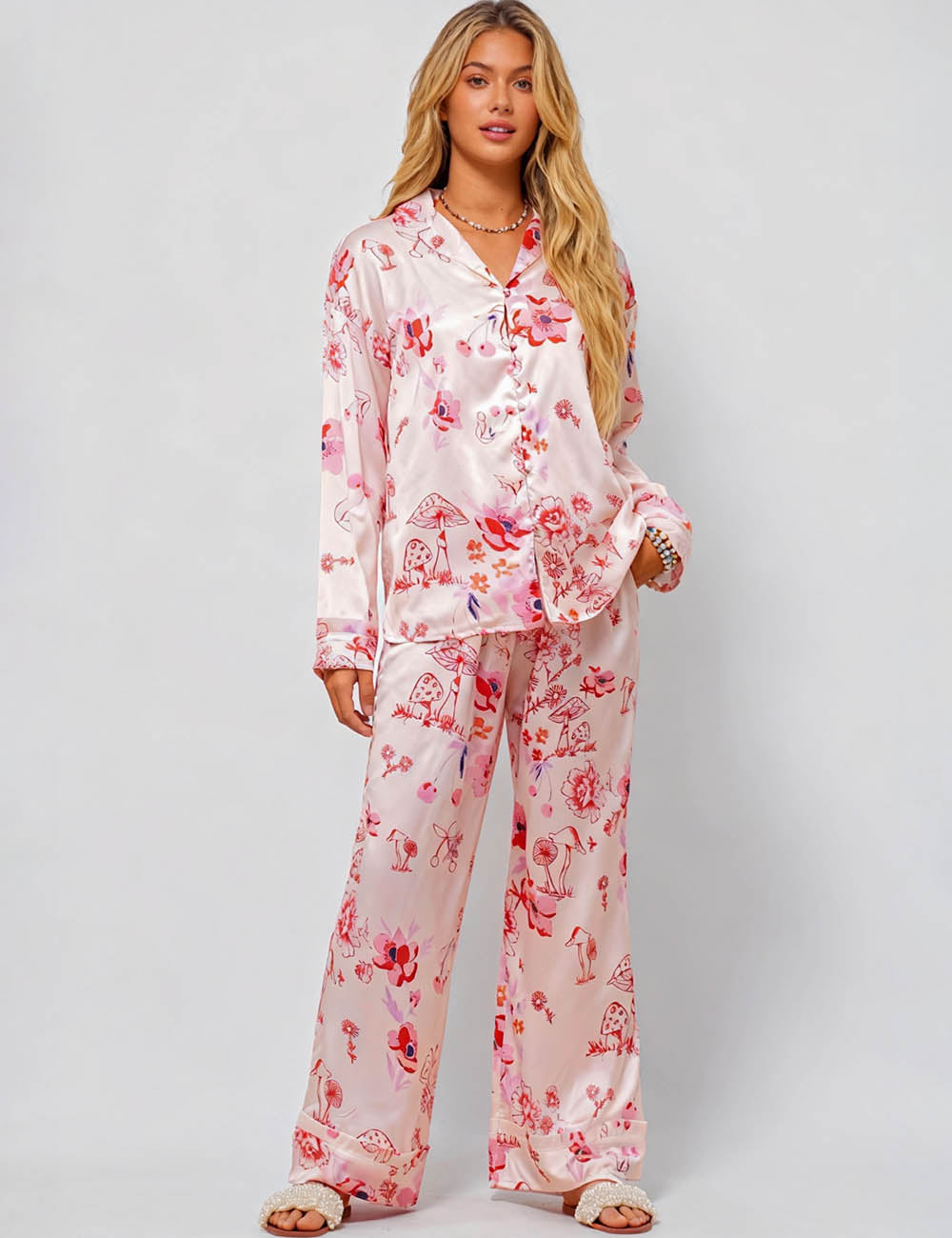 Ladies V-Neck Floral Print Top & Pants Set SKST51306