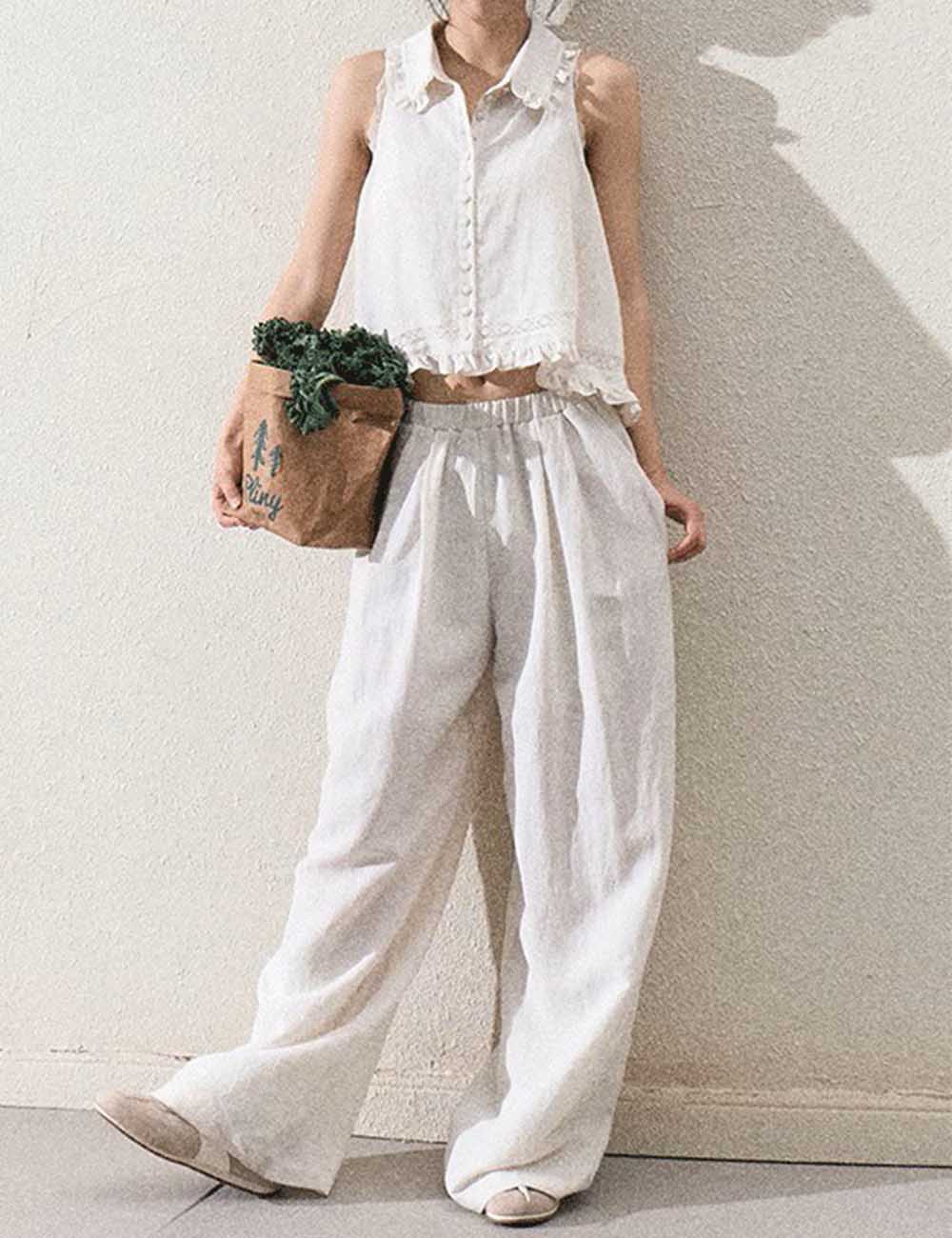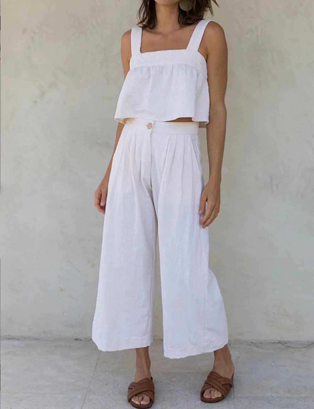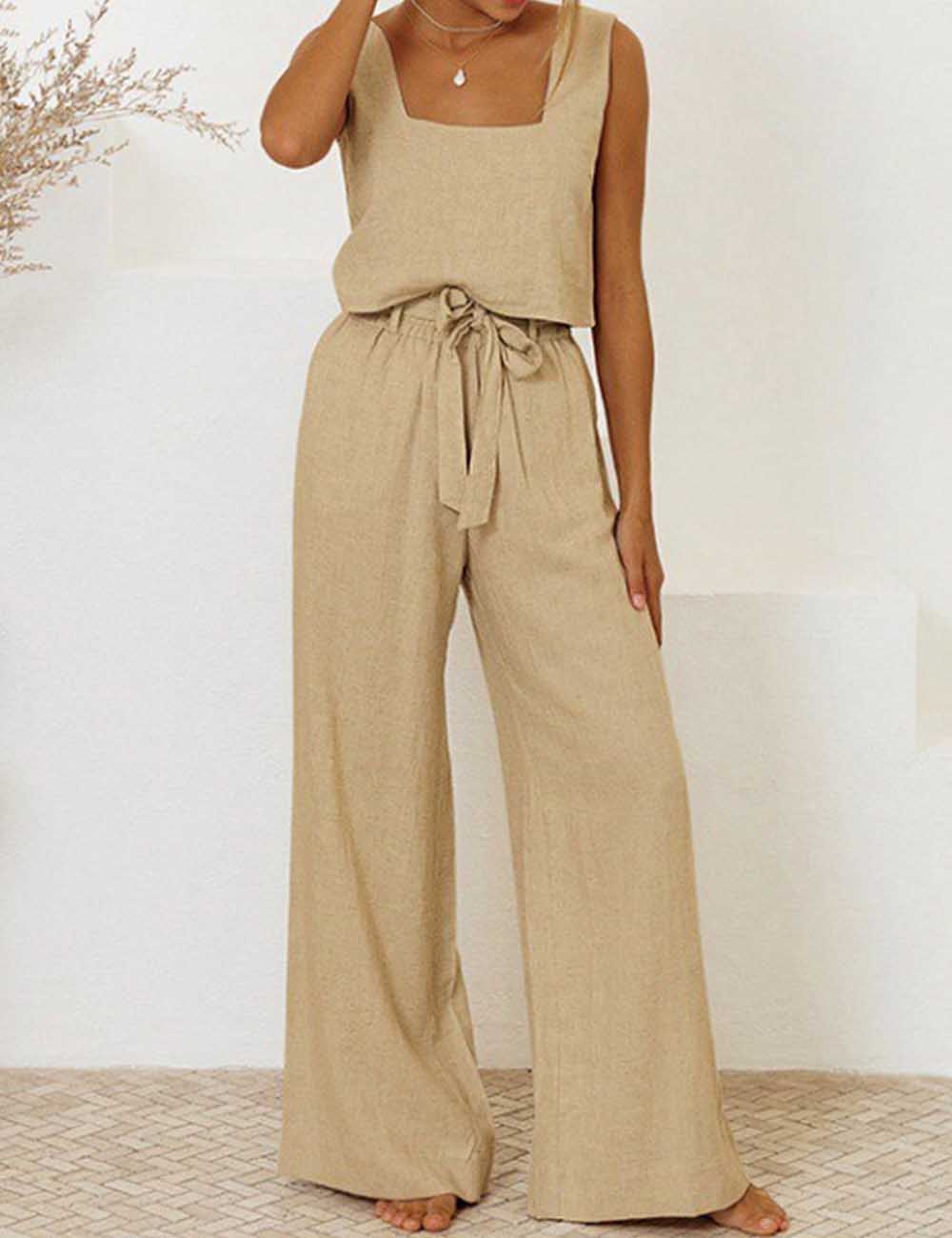Ladies Solid Color Button Closure Cropped Tank Top & Pants Set
