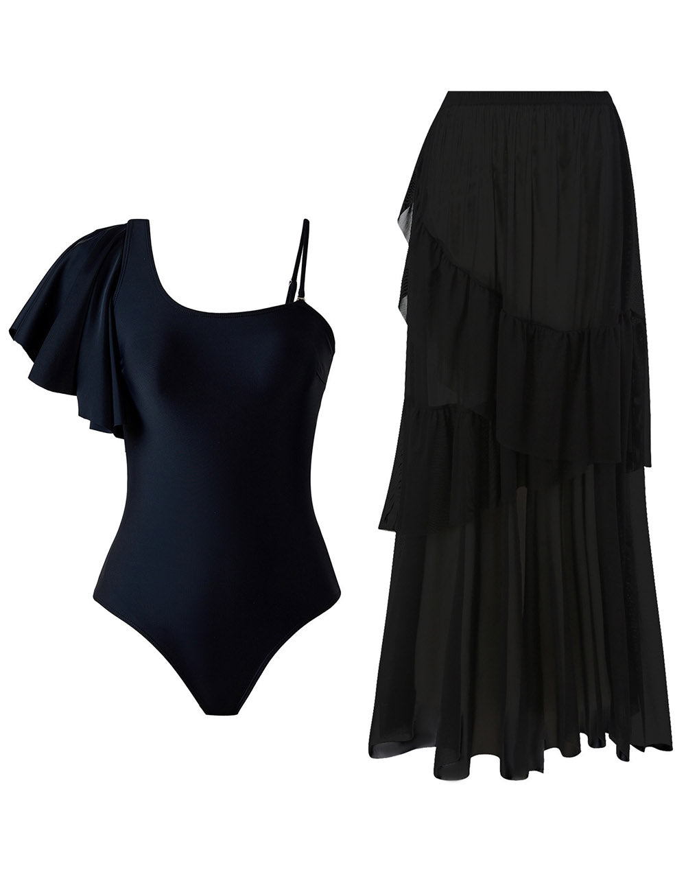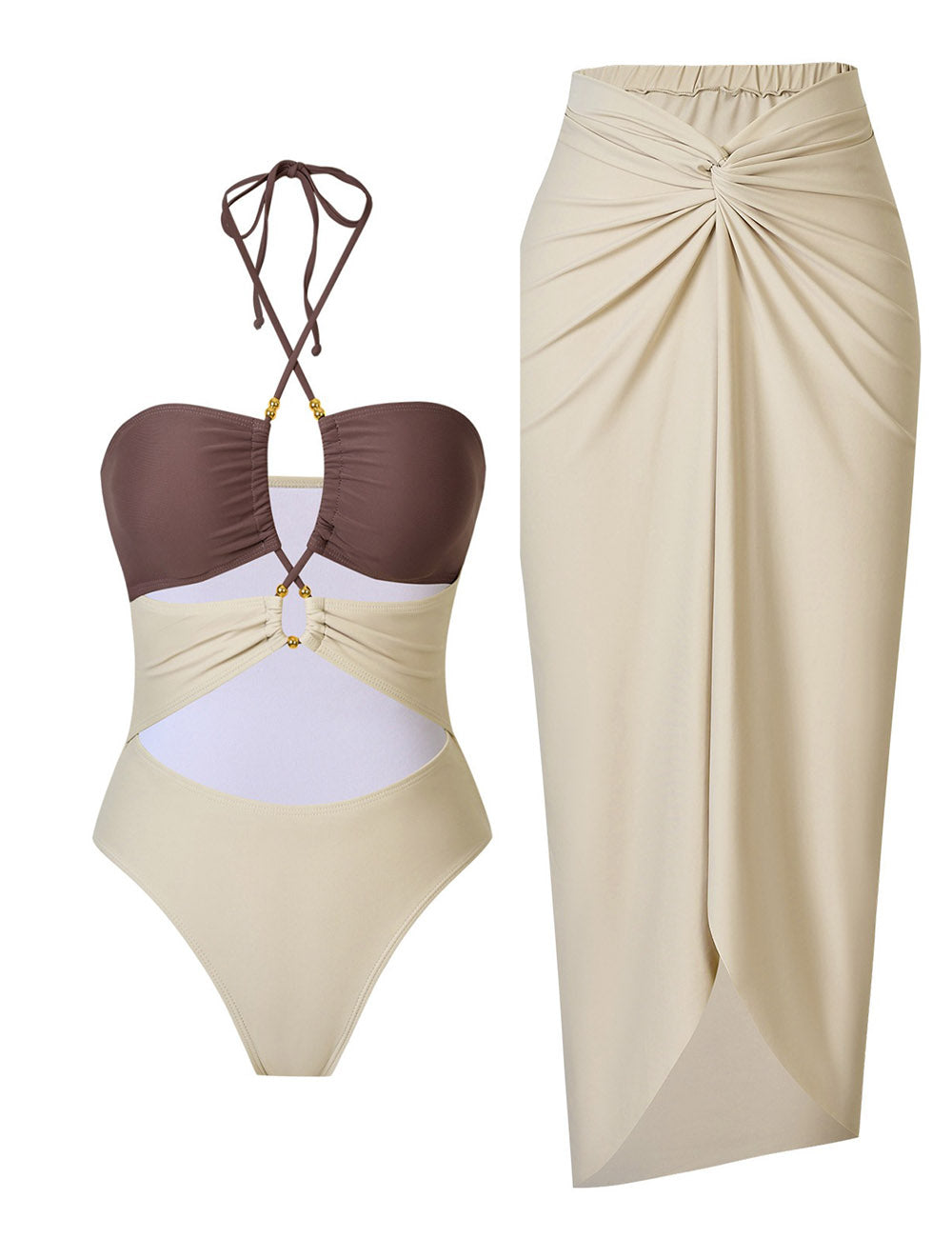 Ladies Halter Hollow Out One Piece Swimwear with Salong