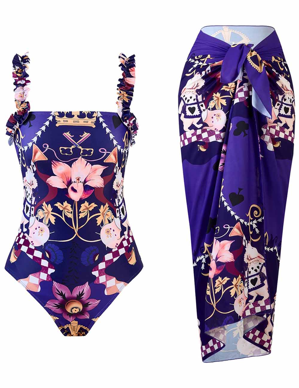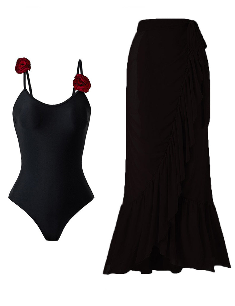 Ladies String Shoulder Red Rose One Piece Swimwear with Salong