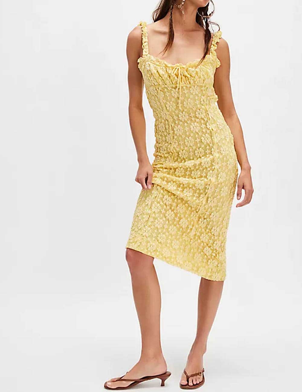 Ladies Floral Lace Strap Shoulder Ruffle Sleeveless Midi Dress