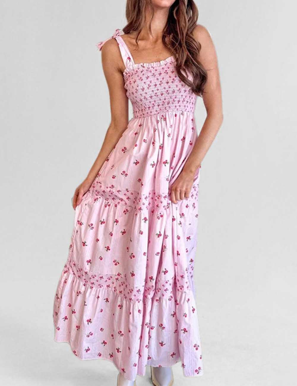 Ladies Tiered Ruffle Smocking Elastic Waist Maxi Skirt