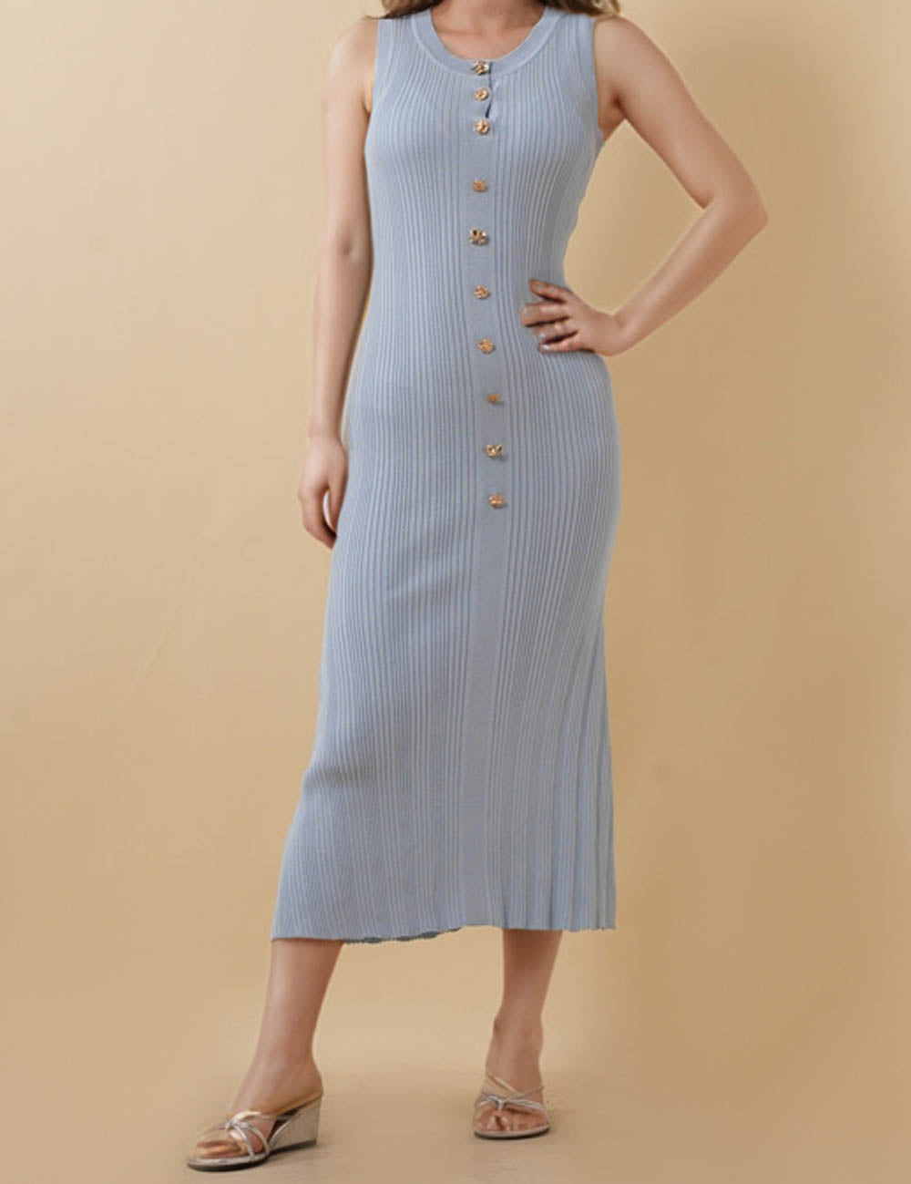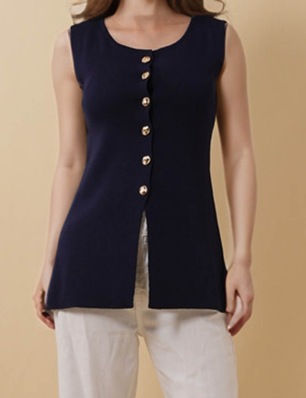 Ladies Solid Color Linen Blend Button Pocket Vest & Skirt Set