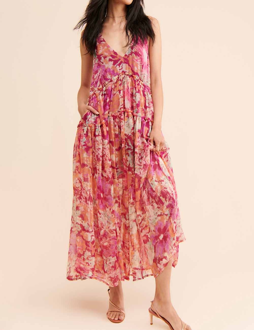 Ladies Floral Print V-Neck Sleeveless Strap Shoulder Maxi Dress