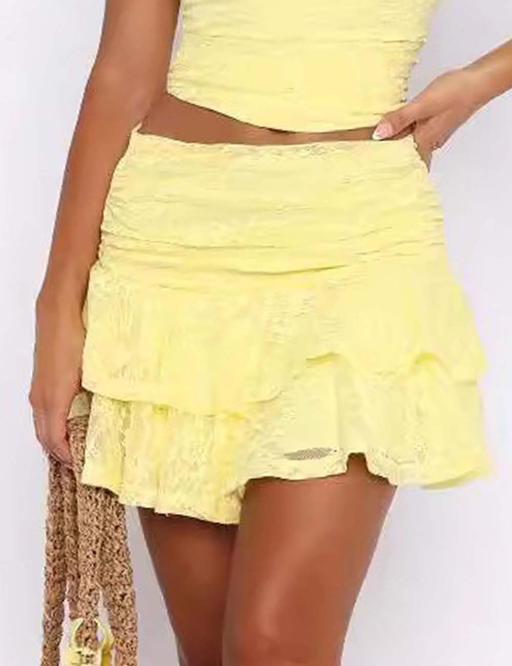 Ladies Solid Color Ruffle Lace Embroidery Mini Skirt