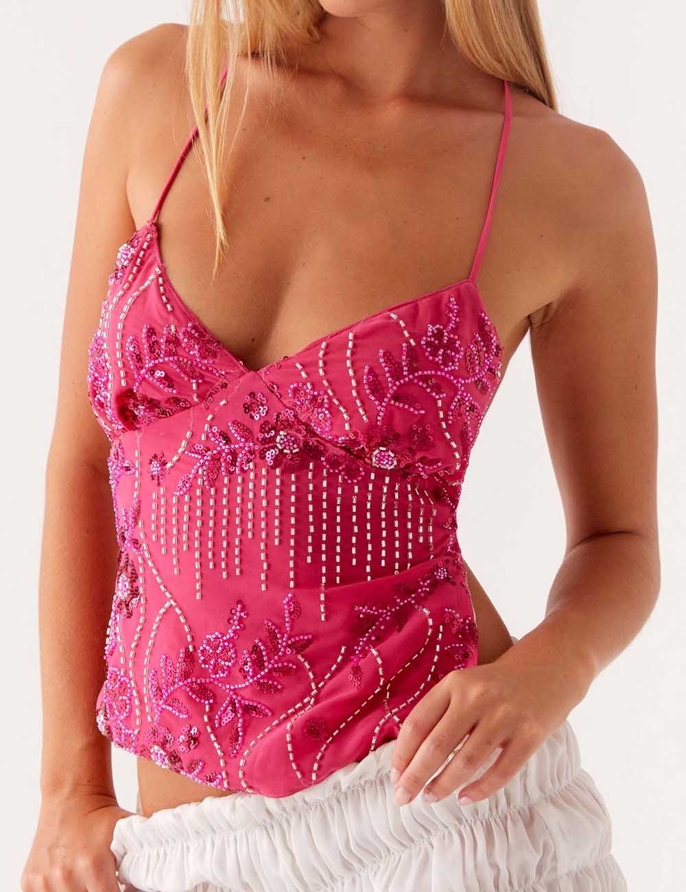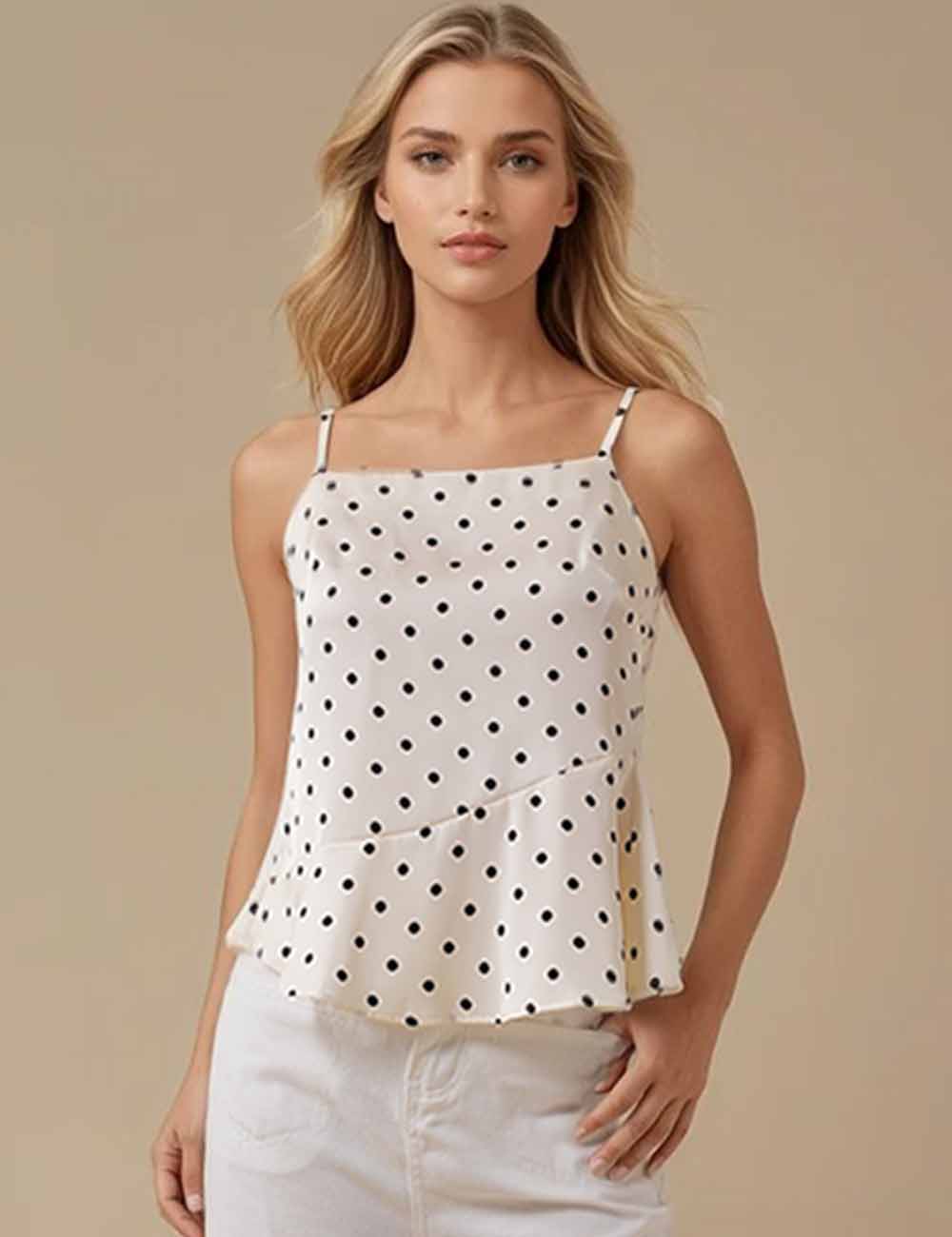 Ladies V Neck Embroiderise Glitter Drawstring Backless Cami Top