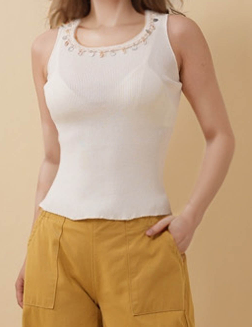 Ladies Multicolor String Shoulder Flower Knit Cami Top 8SKT5VA2