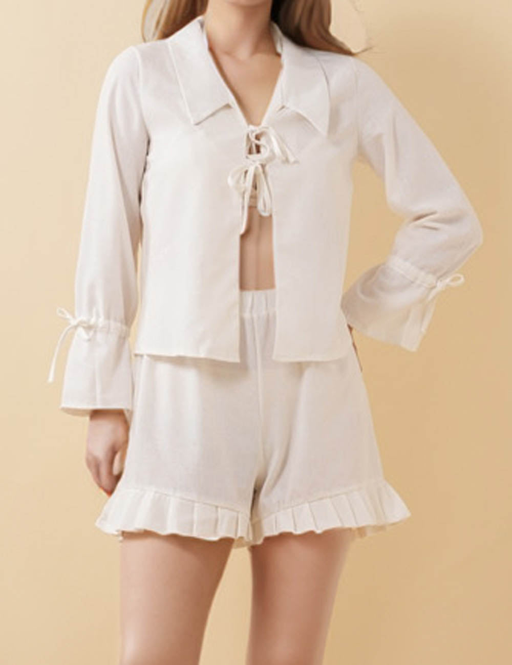 Ladies Solid Color Crinkle String Tie Cami Top & Pants Set