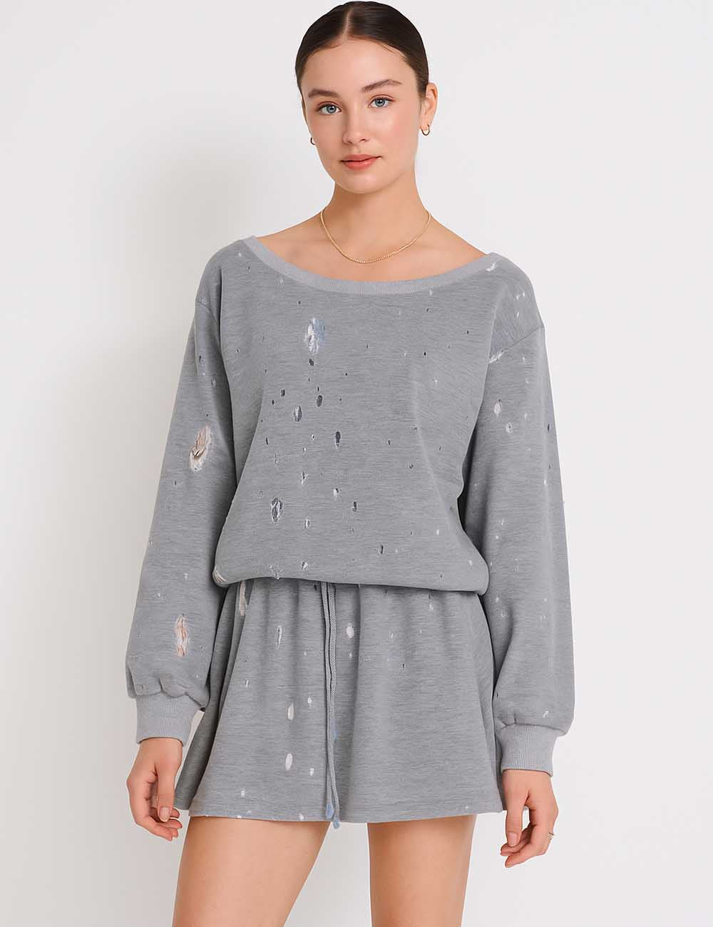 Ladies Irregular Neckline Ruched Top & Maxi Skirt 2PCS Set