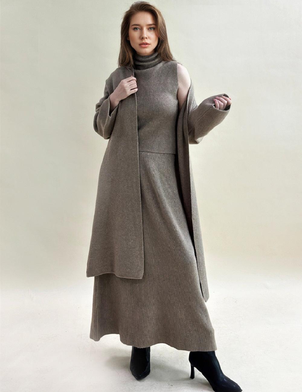 Solid Color Top & Skirt 2PCS Kintted Set Sweater Set HL7300