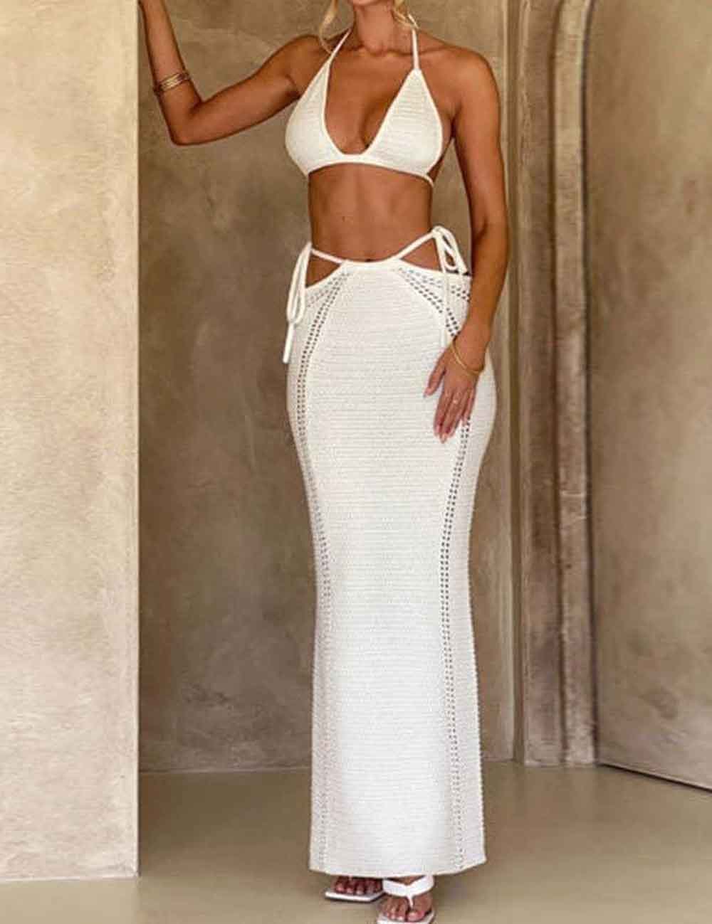 Features: * Ladies Skirt Set * Backless * String Tie Top * Sleeveless * Solid Color * Casual...