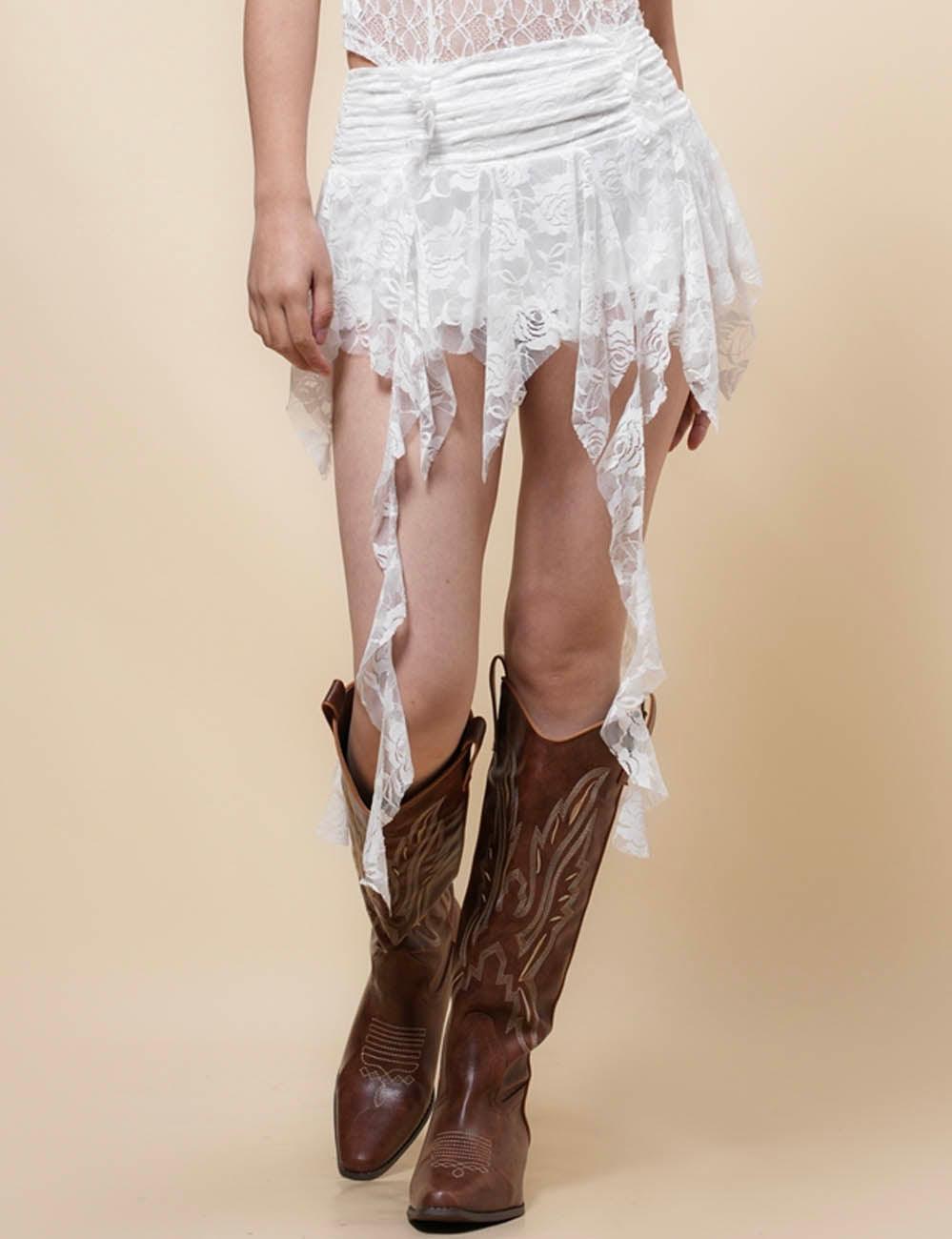 Ladies Solid Color Floral Lace Inregular Ruffle Mini Skirt SKS4991
