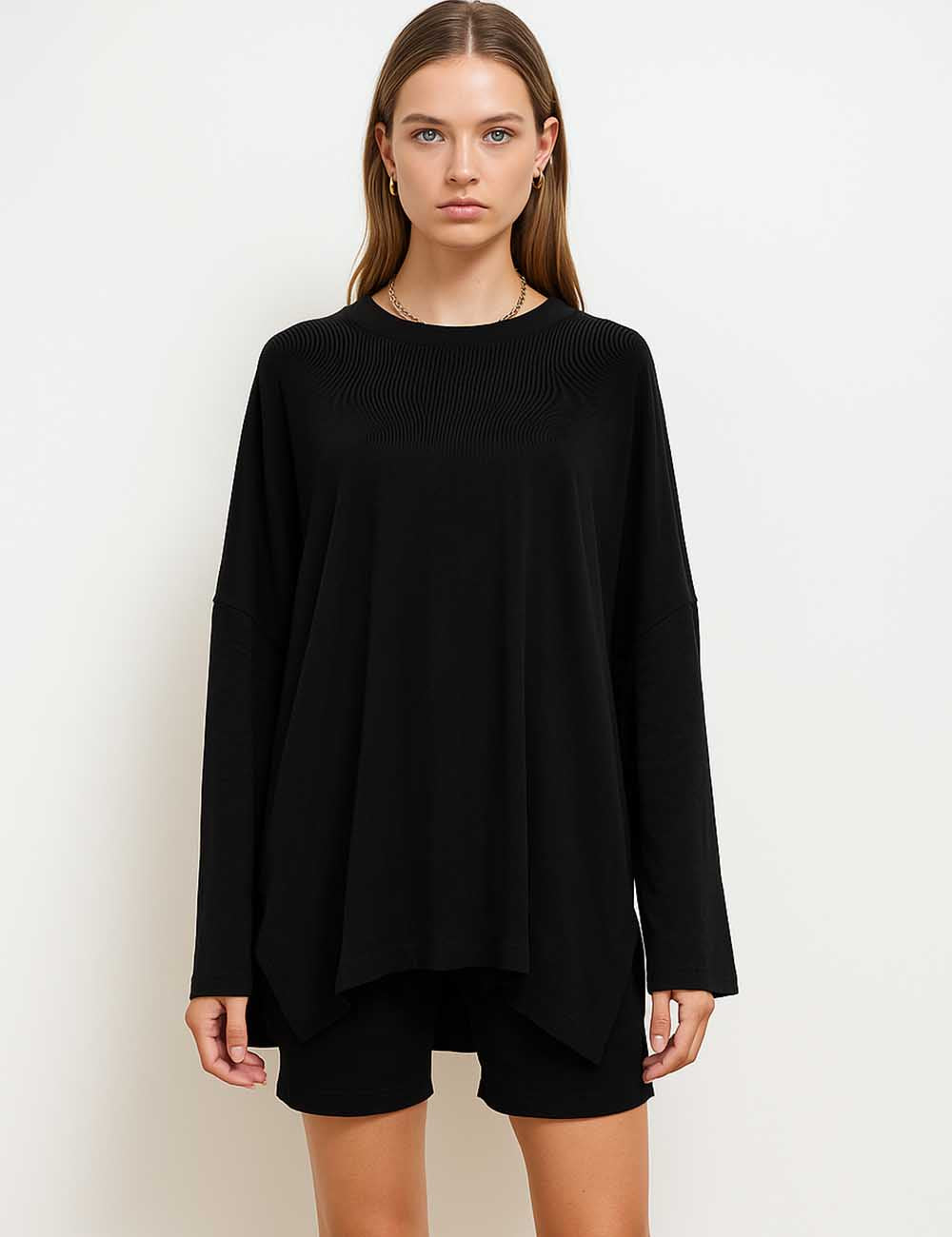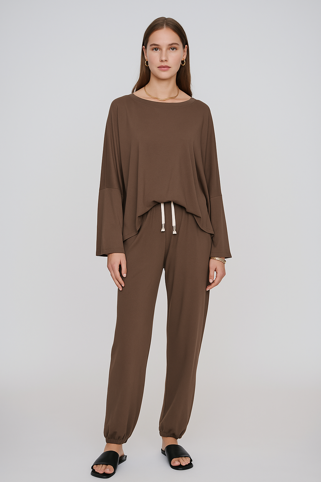 Ladies Round Neck Loungewear Solid Color Long Sleeves Top & Pants Set